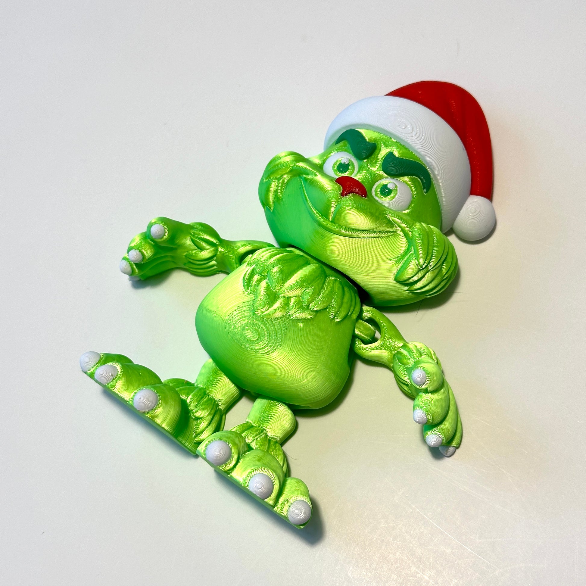Add some mischievous holiday flair to your collection with this 3D printed Anti-Christmas Green Guy! Standing at approximately 4 inches tall, this figure captures the essence of holiday rebellion, decked out in a lively four-color print. Perfect as a gift or seasonal décor piece, the Green Guy is fully articulating, allowing you to pose him however you like for extra personality and charm.