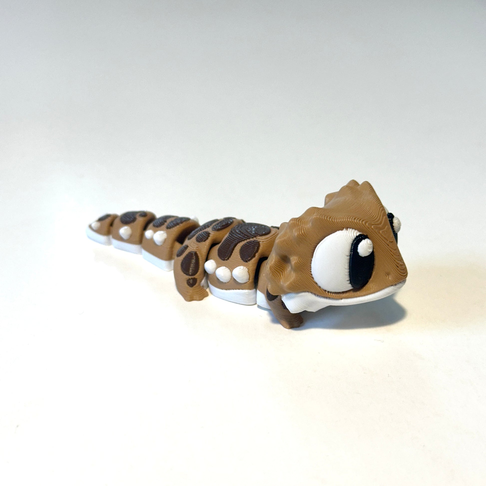 Meet your new favorite flexi friend! This 3D printed Baby Bearded Dragon is a fully articulating miniature companion, perfect for collectors, reptile lovers, and fans of fidget-friendly creatures. Measuring approximately 3.5 inches long, this little dragon may be small, but it's big on personality.