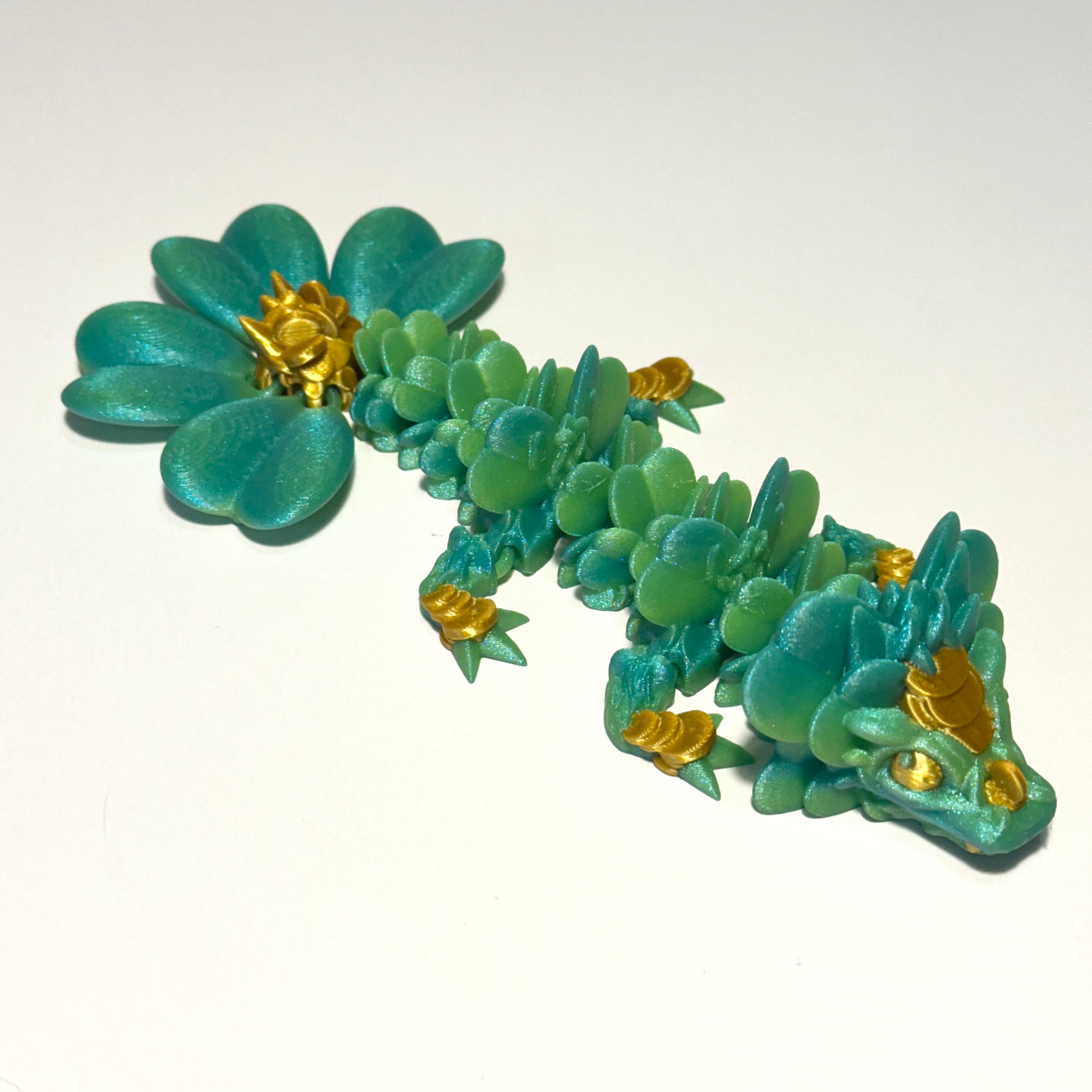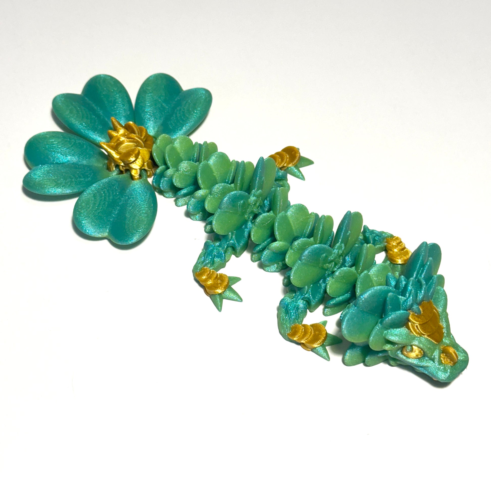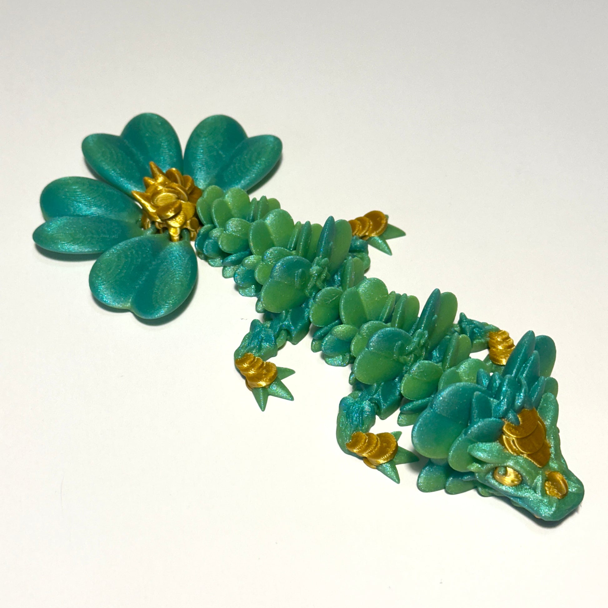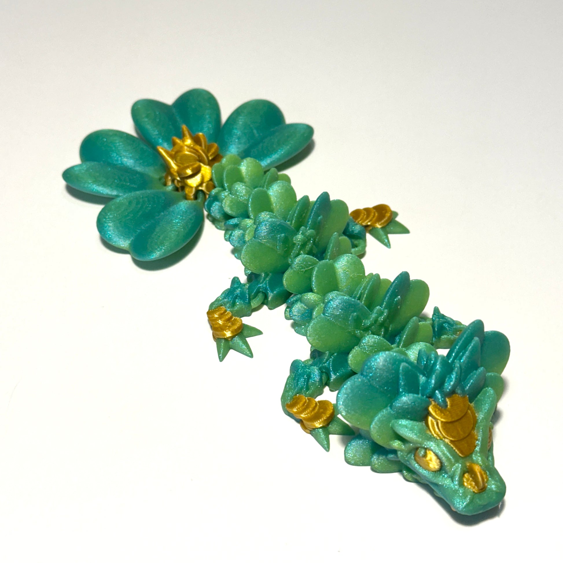 Bring a touch of magic and luck to your collection with this Baby Clover Dragon! Measuring approximately 7.5 inches long, this adorable and fully articulating dragon is designed with intricate clover details, making it a charming companion for fantasy lovers and collectors alike.