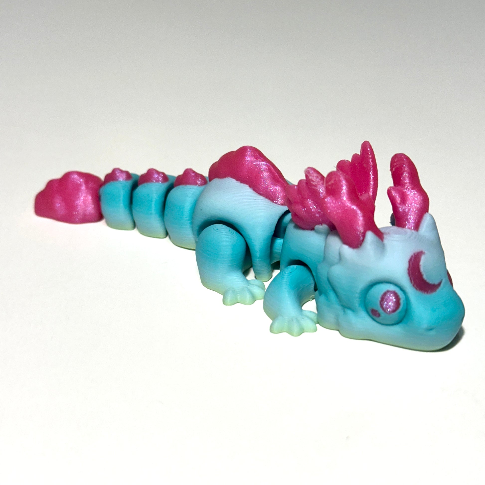 Bring a touch of whimsy to your collection with this Baby Dream Dragon, a fully articulating 3D printed creature designed to enchant dragon lovers of all ages! Standing approximately 4.5 inches tall, this adorable dragon features intricate details and smooth articulation, making it perfect for display, gentle fidgeting, or as a unique gift for fantasy enthusiasts.