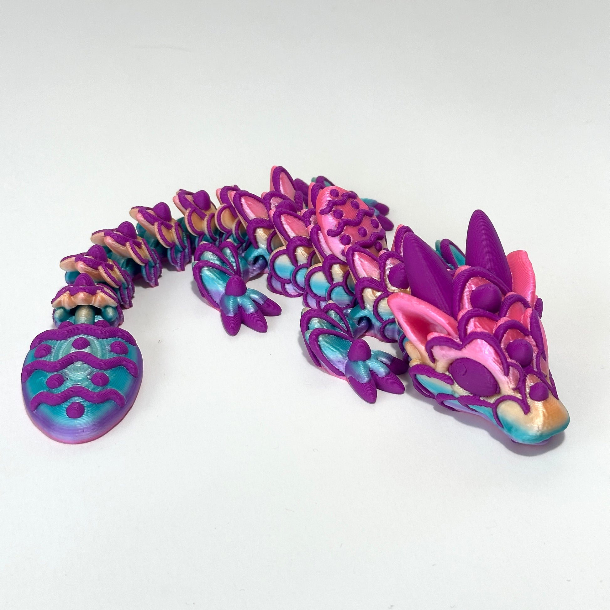 Celebrate Easter with this adorable Baby Easter Cookie Dragon! This fully articulating 3D printed dragon features Easter egg cookies adorning its entire body, giving it a festive and whimsical charm. Measuring approximately 9 inches long, this delightful dragon is perfect for display, fidgeting, or as a unique gift for dragon and holiday lovers alike.