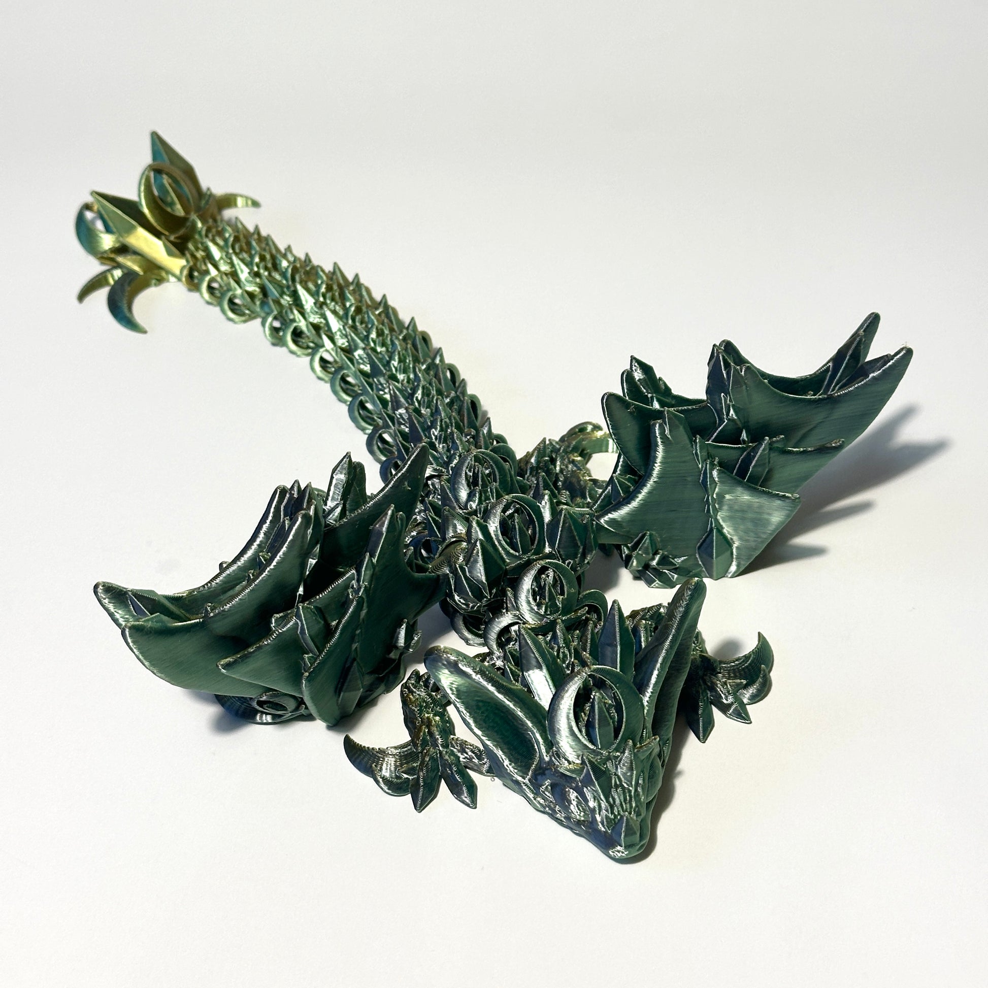 Crafted with Care: Our Baby Nightwing Dragon is printed in high-quality PLA, a biodegradable and eco-friendly material derived from renewable resources like corn starch. PLA is known for its durability and vibrant colors, making it an excellent choice for a stunning, long-lasting piece of art. The dragon's intricate details and smooth articulation showcase the precision of 3D printing, bringing this mythical creature to life in your hands.