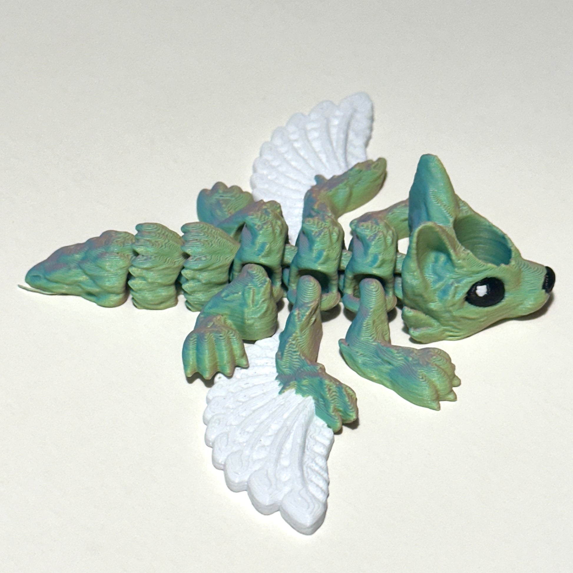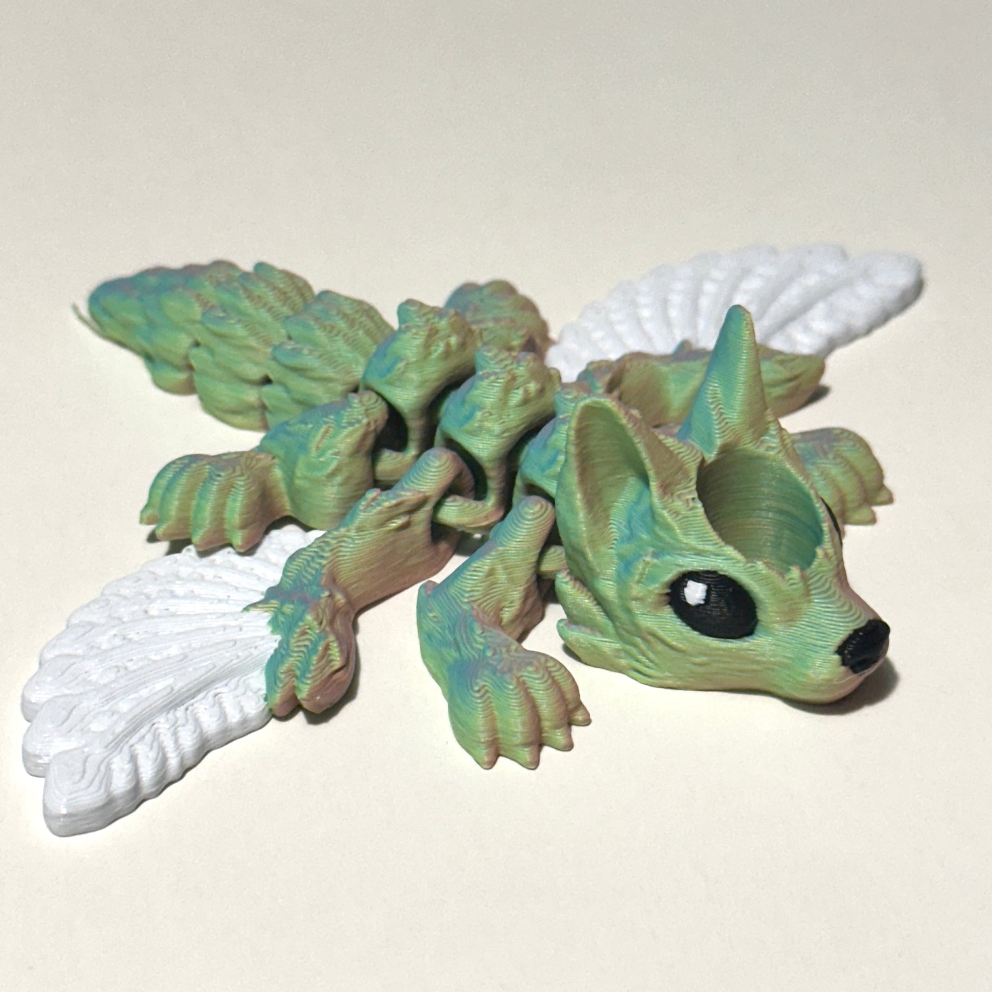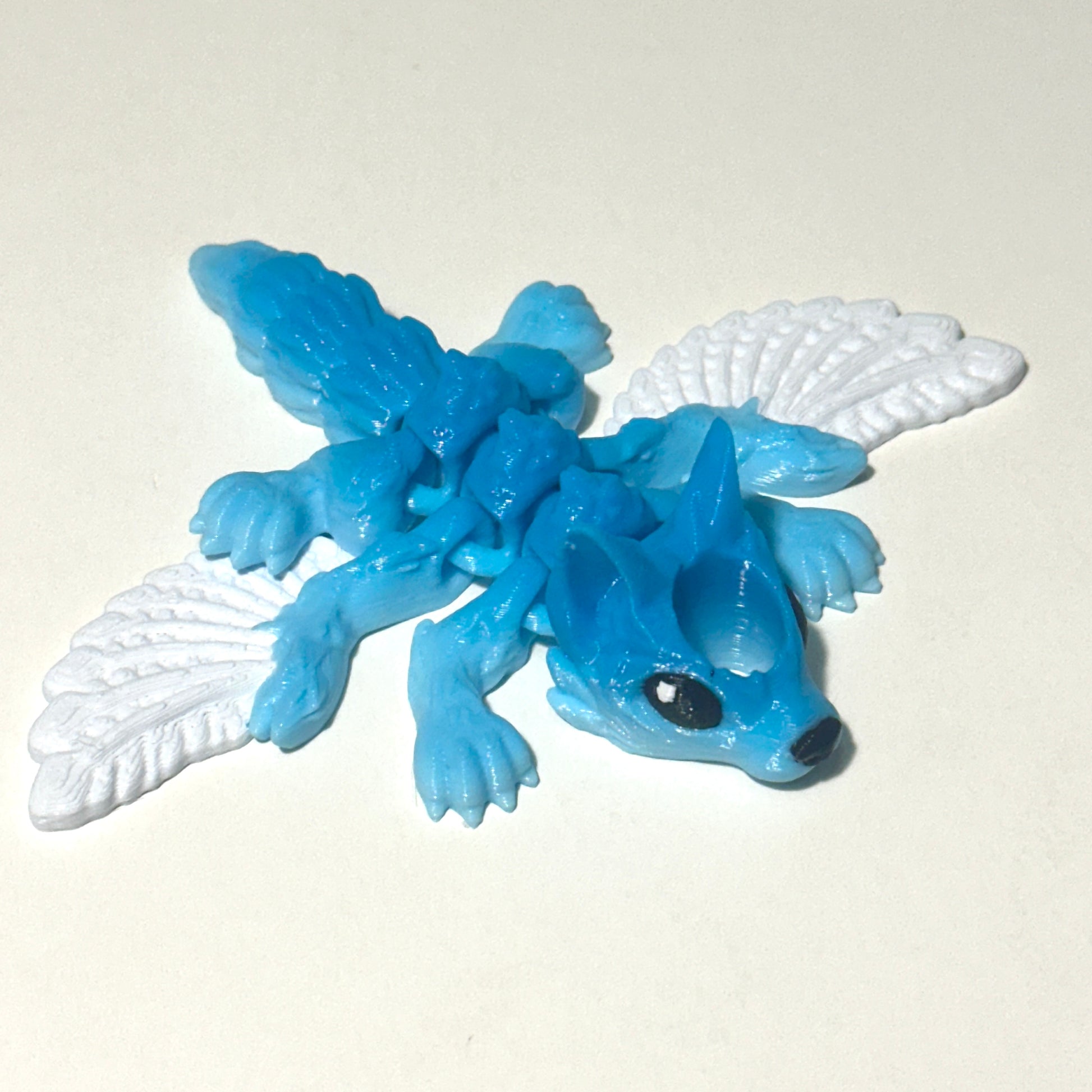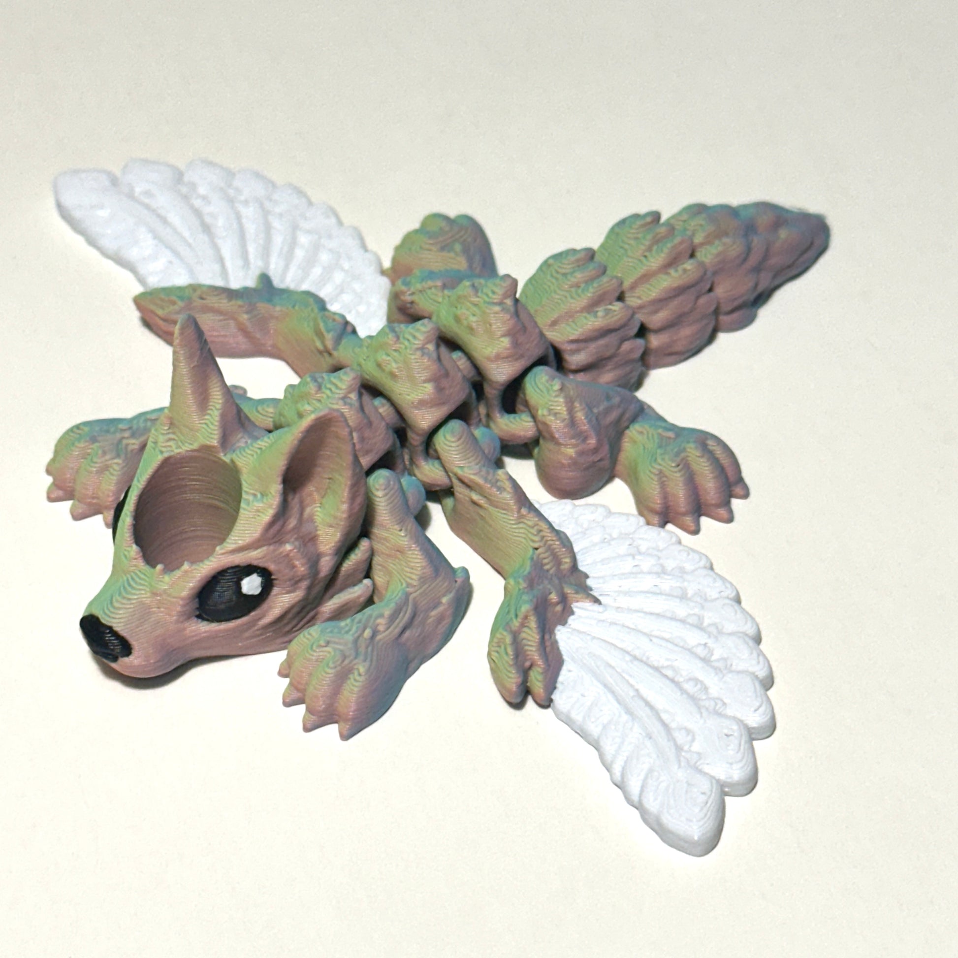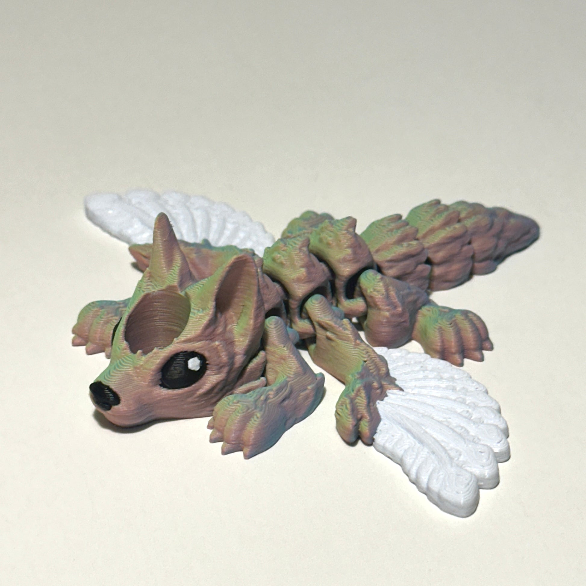 Meet your next favorite companion—this adorable Baby Winged Wolf is a fully articulating 3D printed creature that brings fantasy to life in the palm of your hand! Measuring approximately 4 inches long, this miniature marvel is crafted with three vibrant filament colors, giving each one a unique and eye-catching appearance.