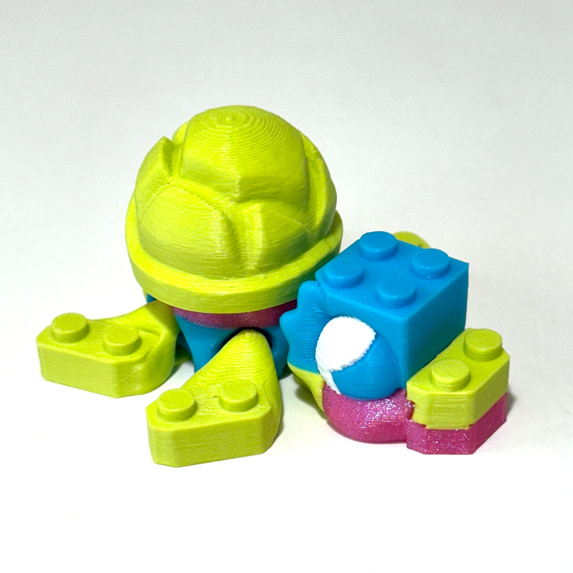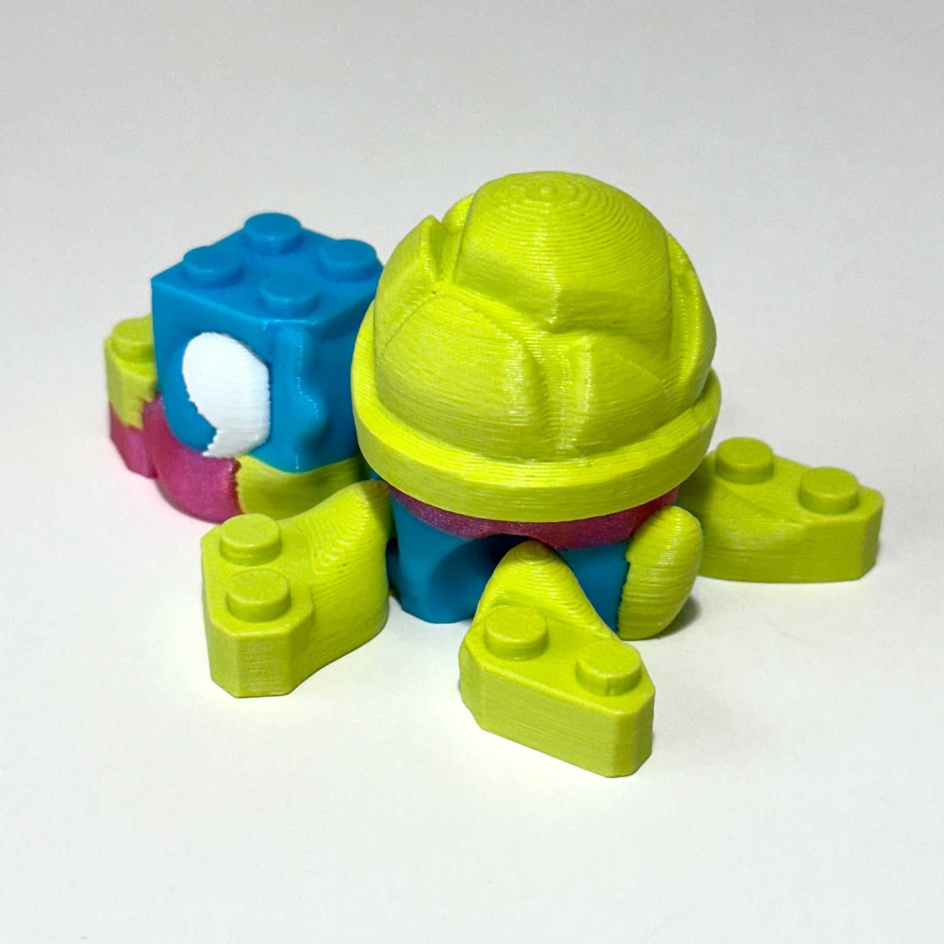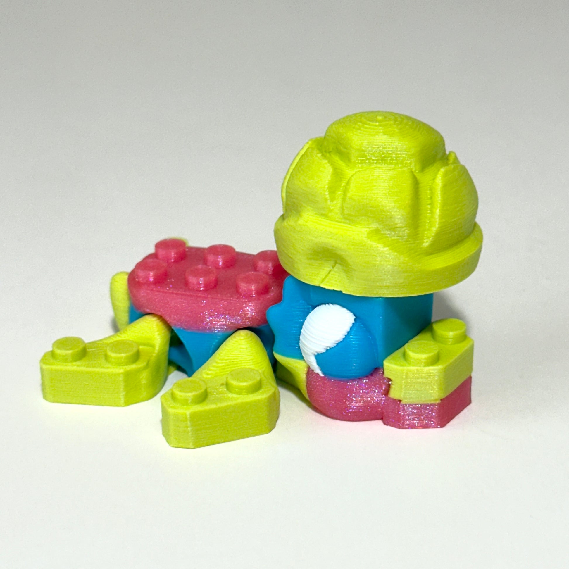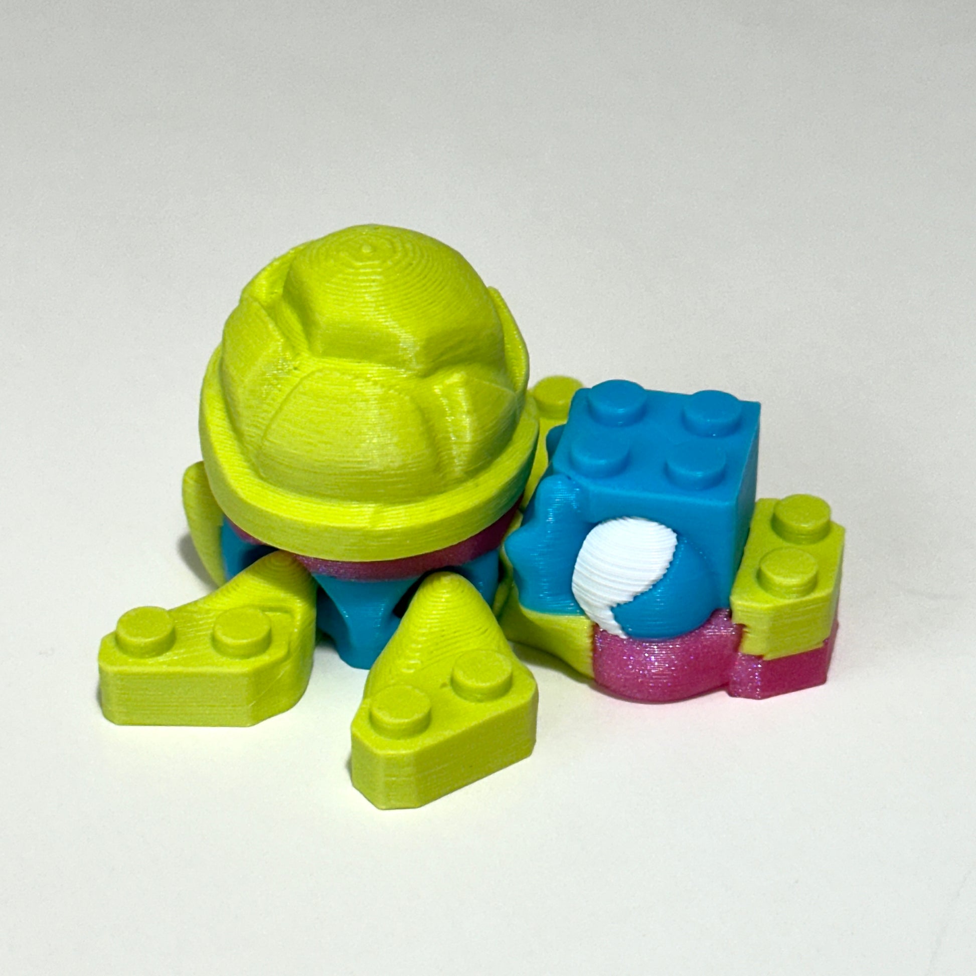 Each Bricky Turtle is 3D printed using high-quality PLA, a plant-based material known for being both lightweight and durable. It's the perfect blend of strength and detail, giving your turtle a sturdy, eye-catching finish while being more eco-friendly than traditional plastics.
