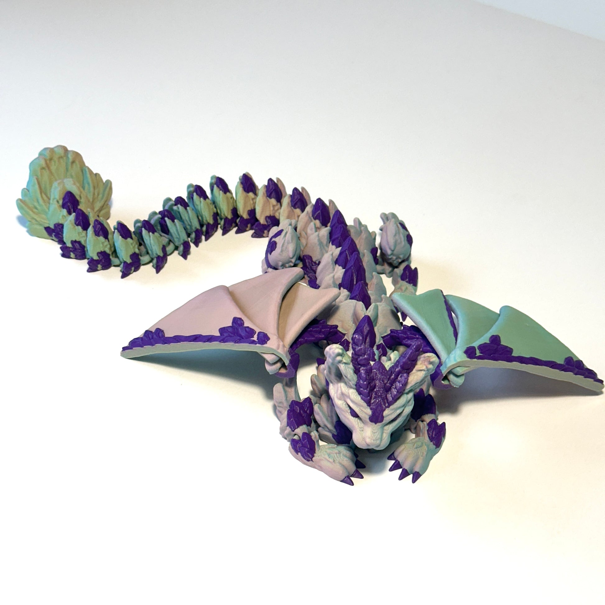 Unleash the magic of both feline grace and dragon mystique with this 3D Printed Cat Dragon! Measuring approximately 14 inches long, this fully articulating creature is designed to move fluidly, making it perfect for fidgeting, posing, or displaying in your collection.