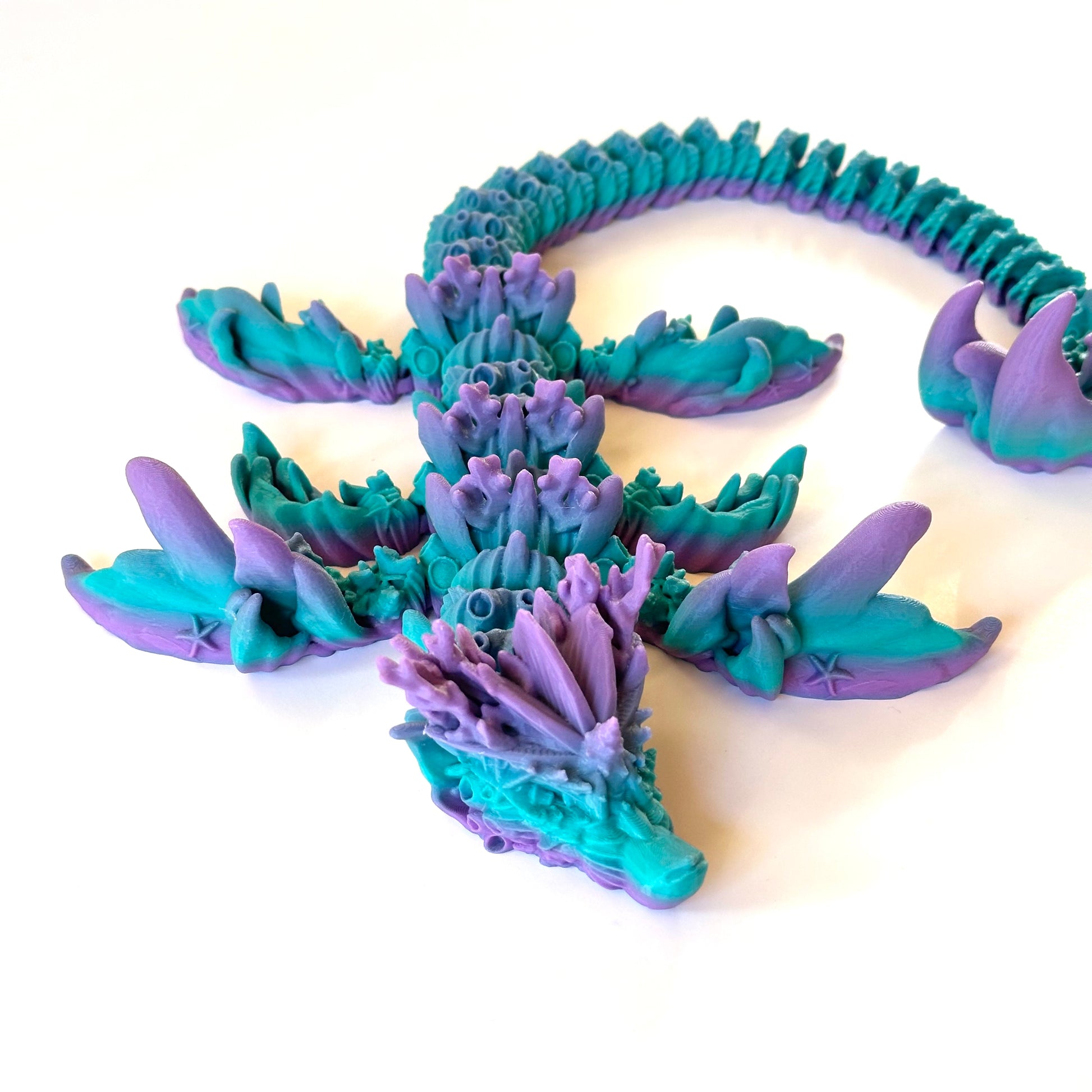 Crafted with precision using PLA (Polylactic Acid), a biodegradable and environmentally friendly material, our Coral Reef Dragon not only captivates with its aesthetics but also boasts durability and sustainability. Rest assured, each dragon is carefully printed to deliver exceptional quality and longevity.