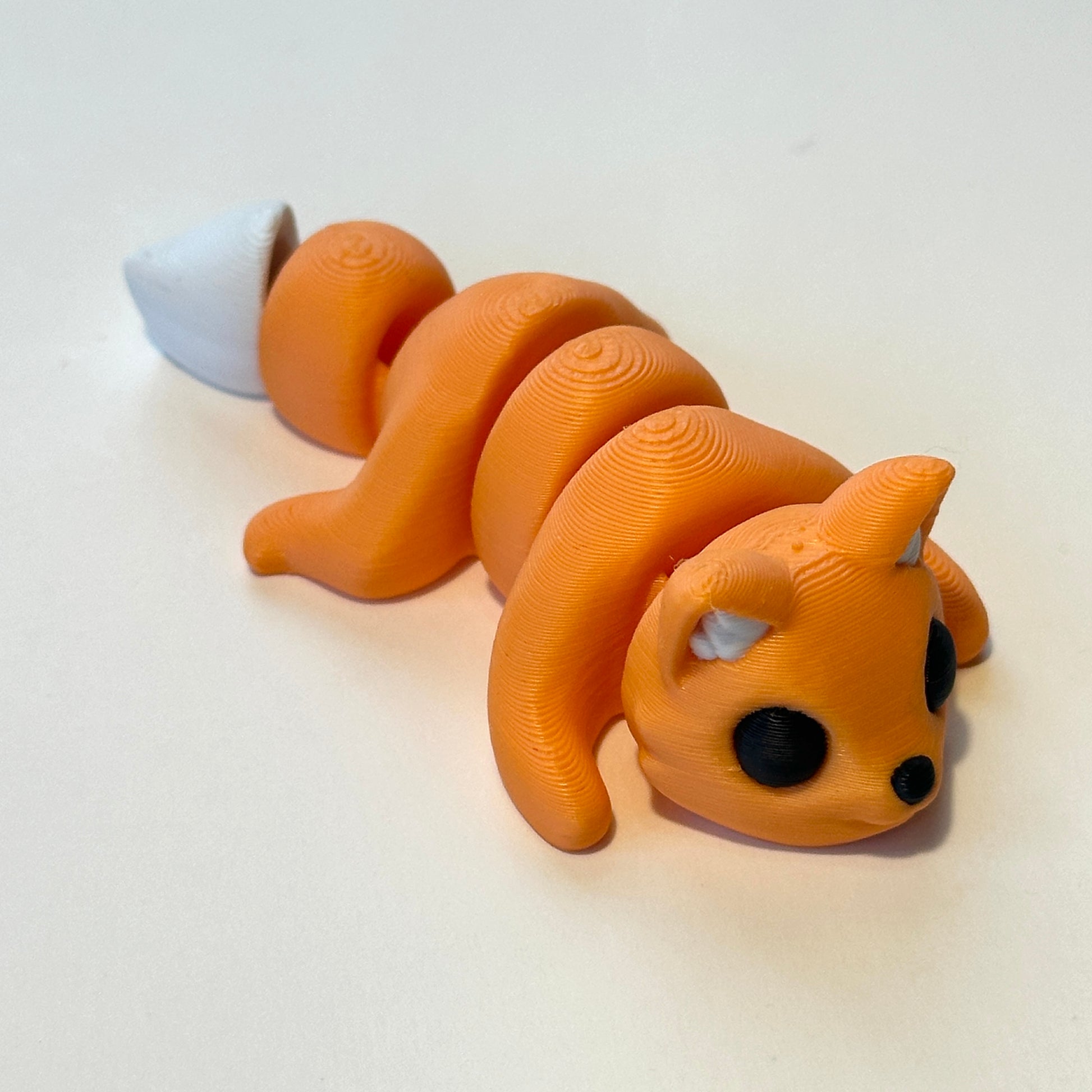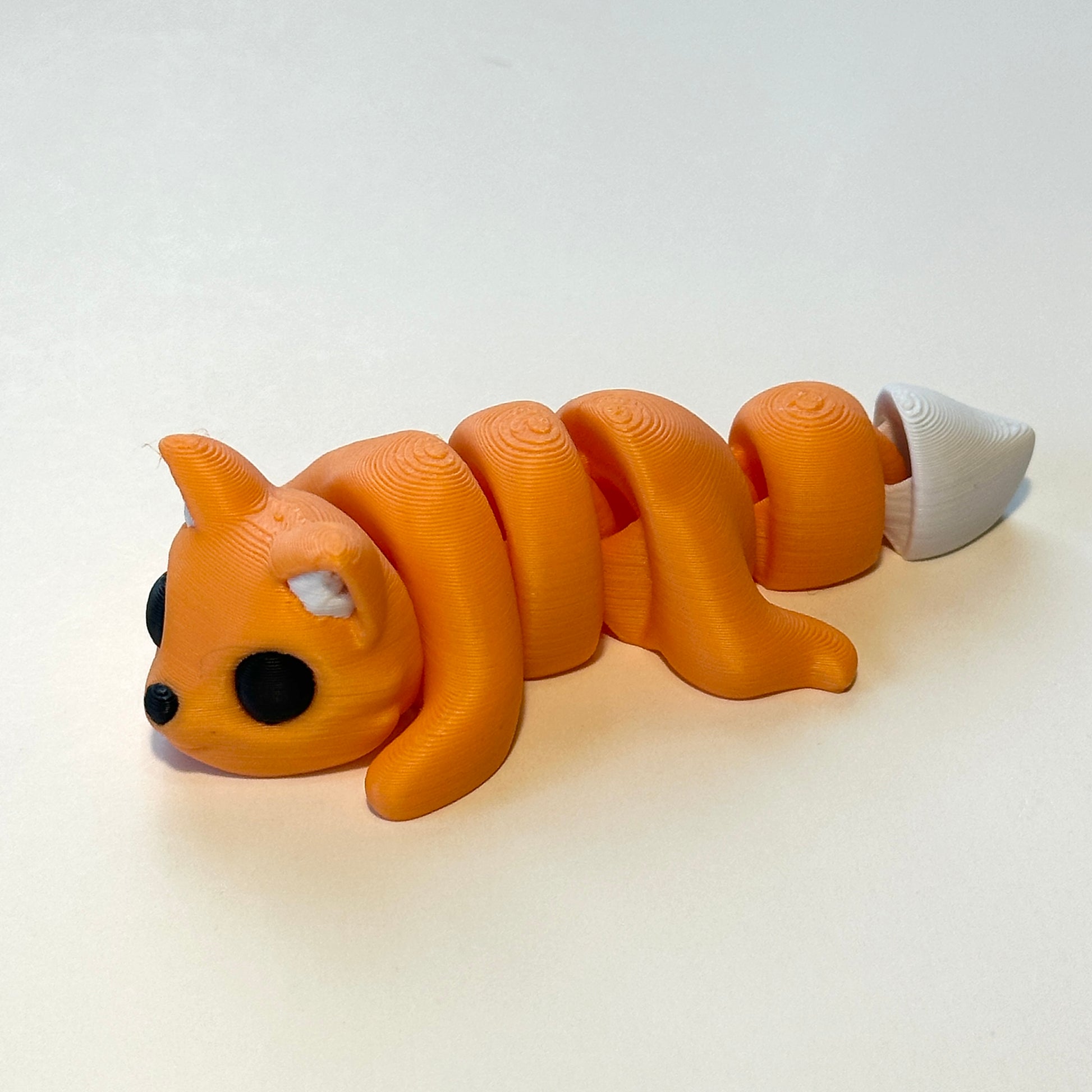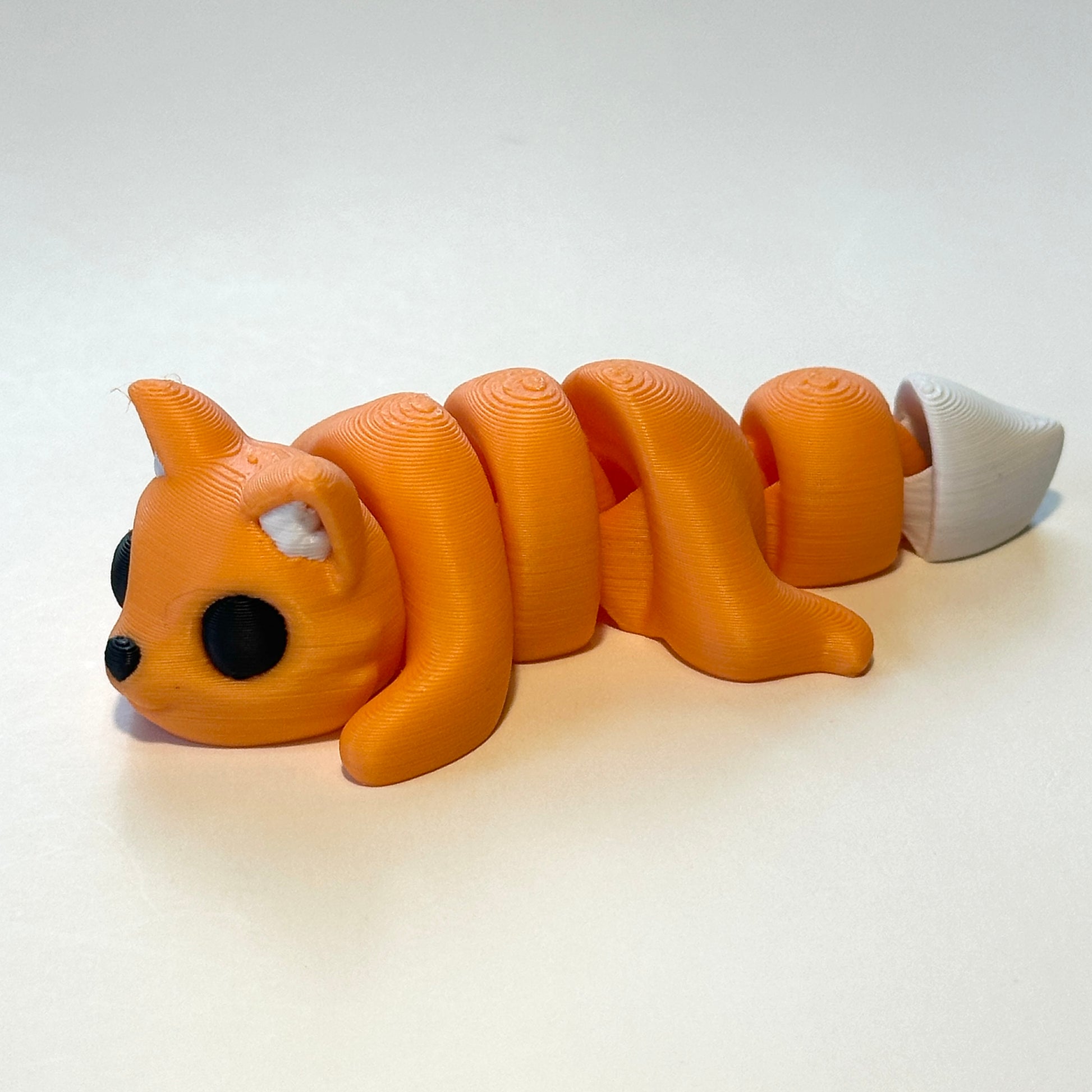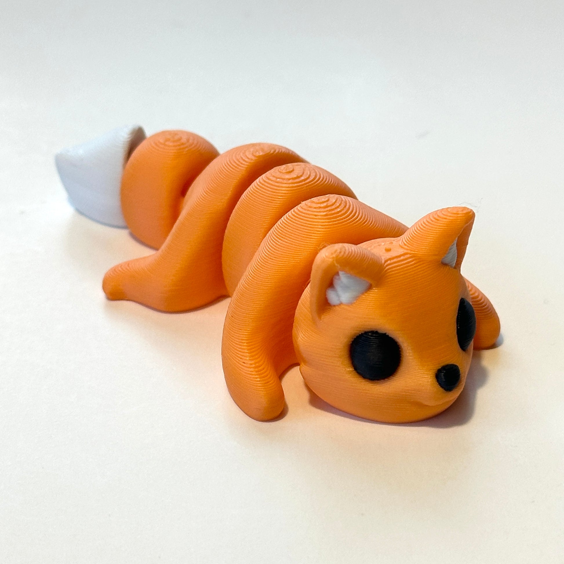 Meet the Flexi Baby Fox, a charming and fully articulating 3D printed companion! This little fox is approximately 3.5 inches long, making it the perfect size to sit on your desk, shelf, or anywhere you need a touch of cuteness. Its flexible design allows for gentle movement, adding to its playful personality.
