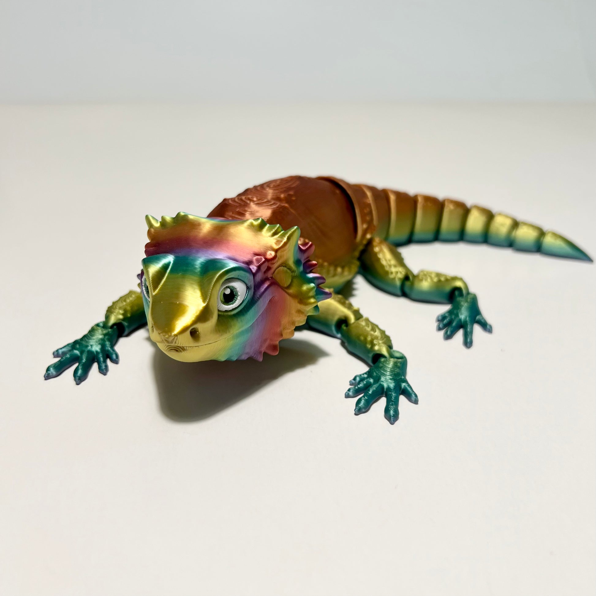 Welcome to our store! Dive into the fascinating world of 3D printed wonders with our fully articulating Bearded Dragon. Crafted with precision and care, this lifelike creature measures approximately 10 inches long, making it a captivating addition to any collection.