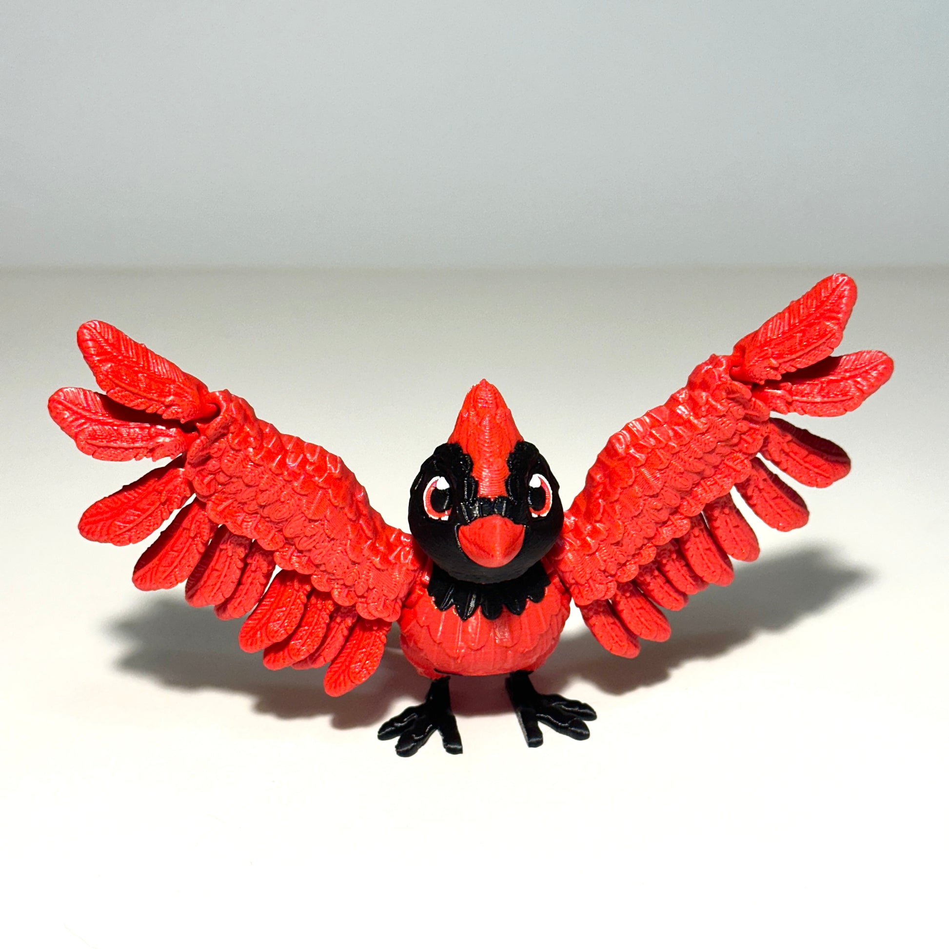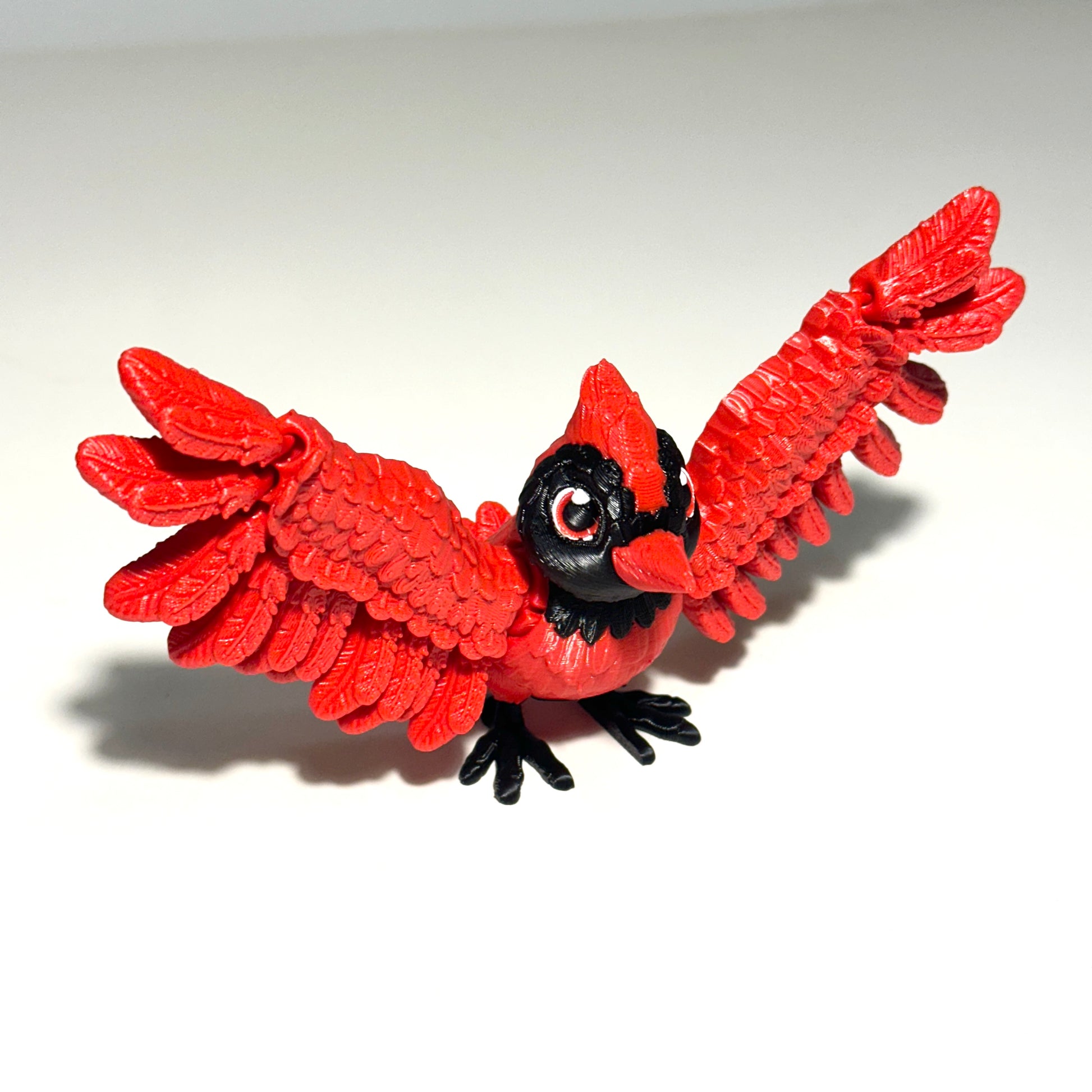 Add a touch of vibrant nature to your collection with this 3D Printed Flexi Cardinal! Measuring approximately 6 inches long, this fully articulating bird features stunning detail and smooth, flexible movement—perfect as a unique desk companion, display piece, or thoughtful gift for bird lovers.