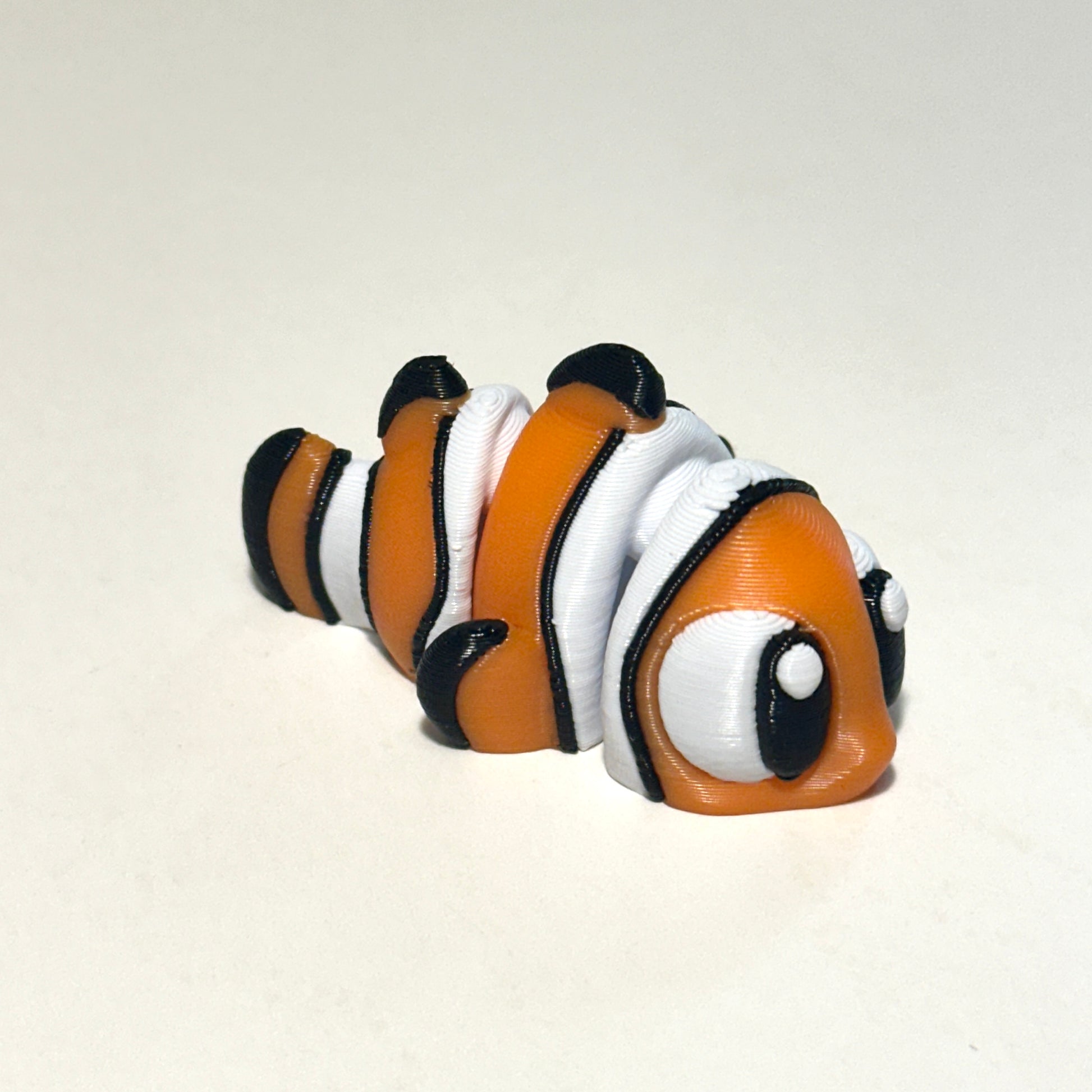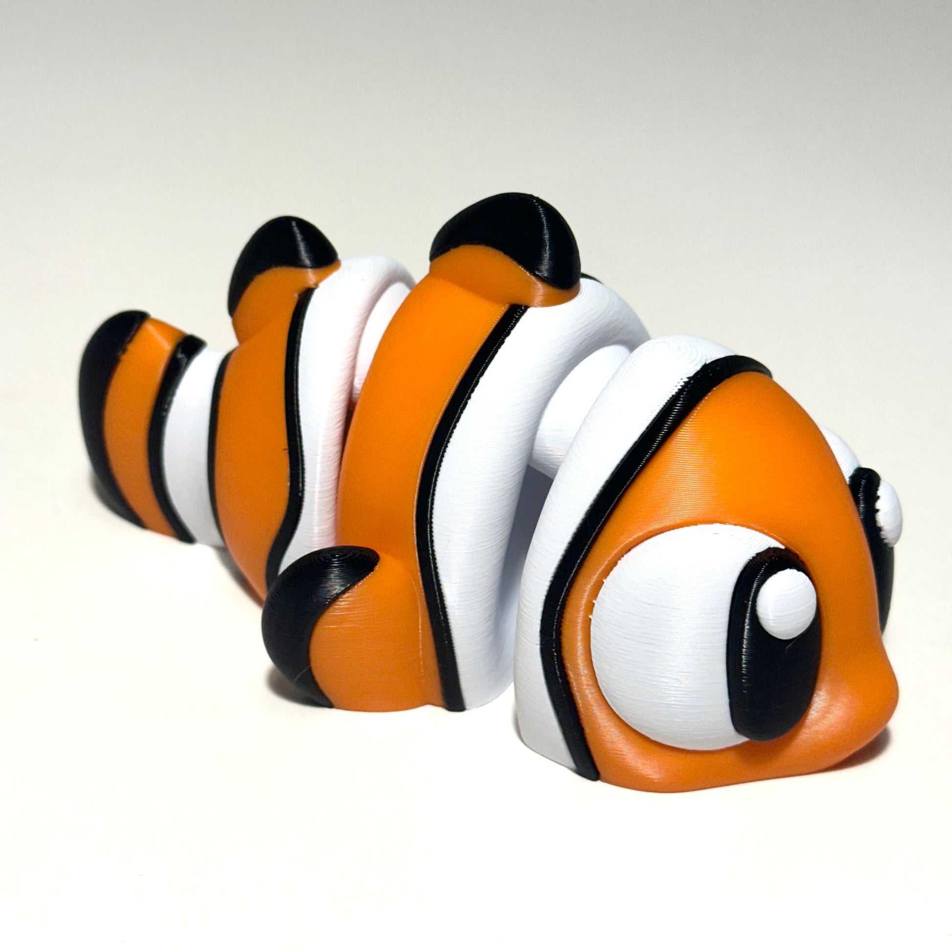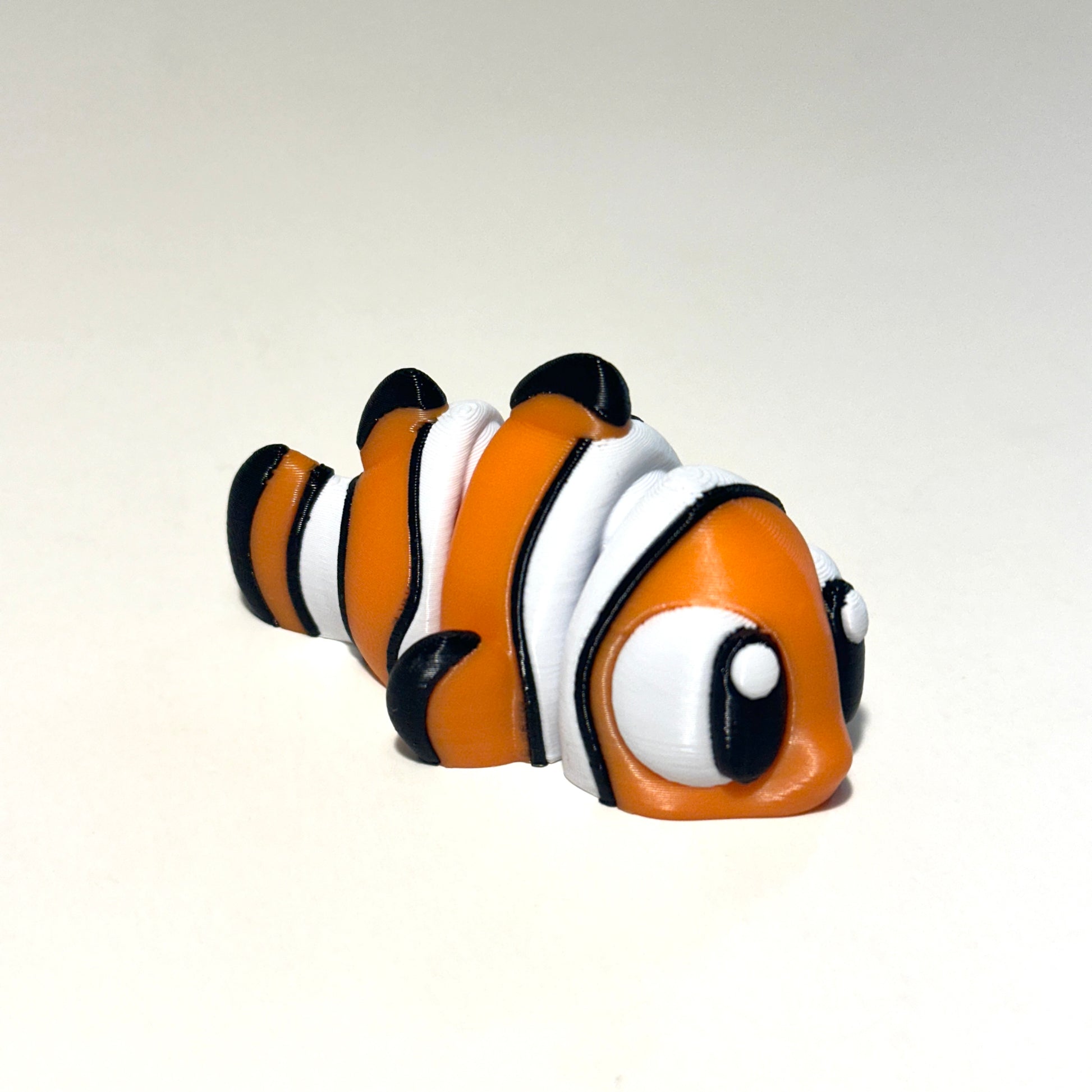 Each Flexi Clownfish is printed in vibrant three-color PLA, giving it a striking and lifelike appearance. The articulated body allows for gentle movement, making it fun to pose and play with. Whether you display it on your shelf, desk, or give it as a gift, this clownfish is sure to draw smiles.