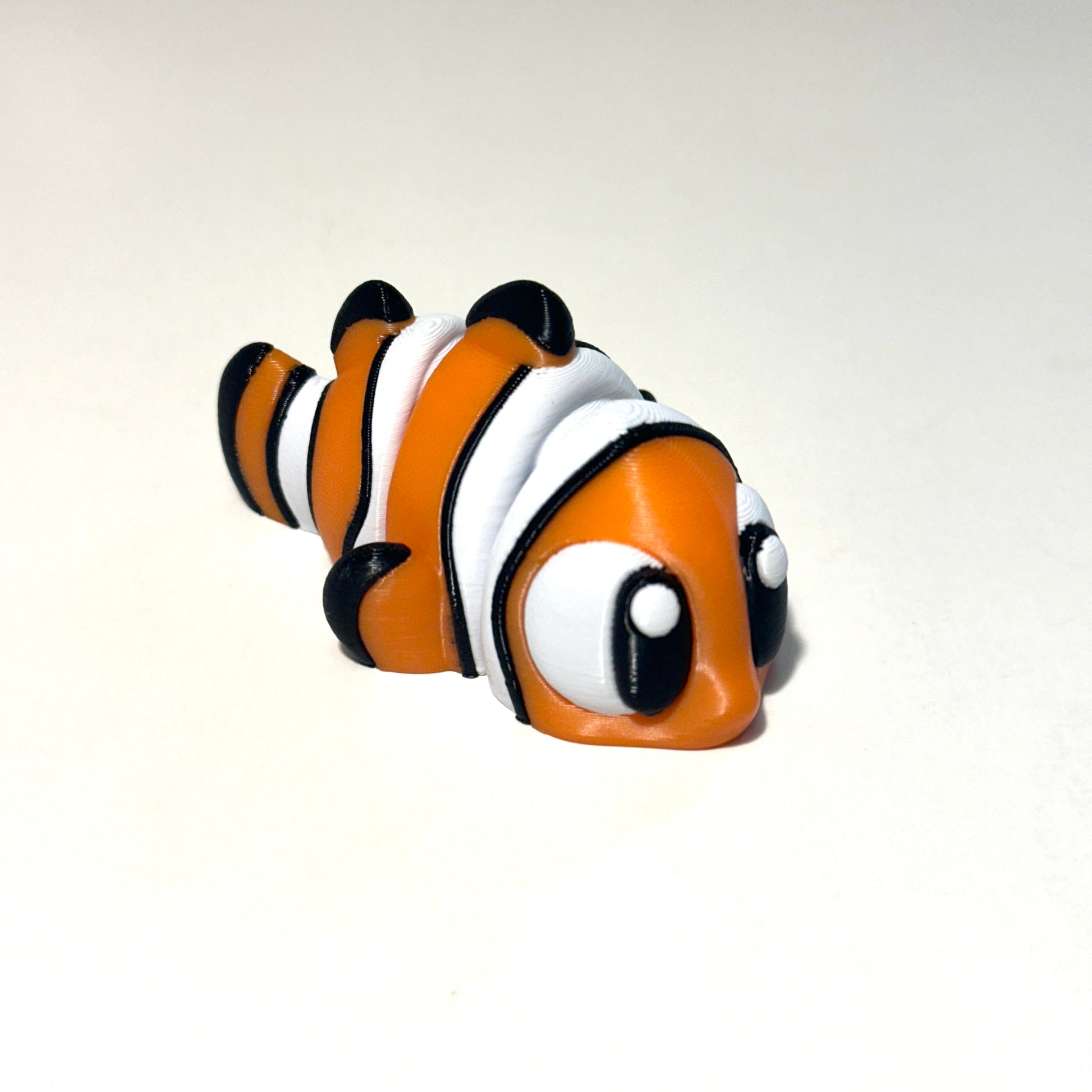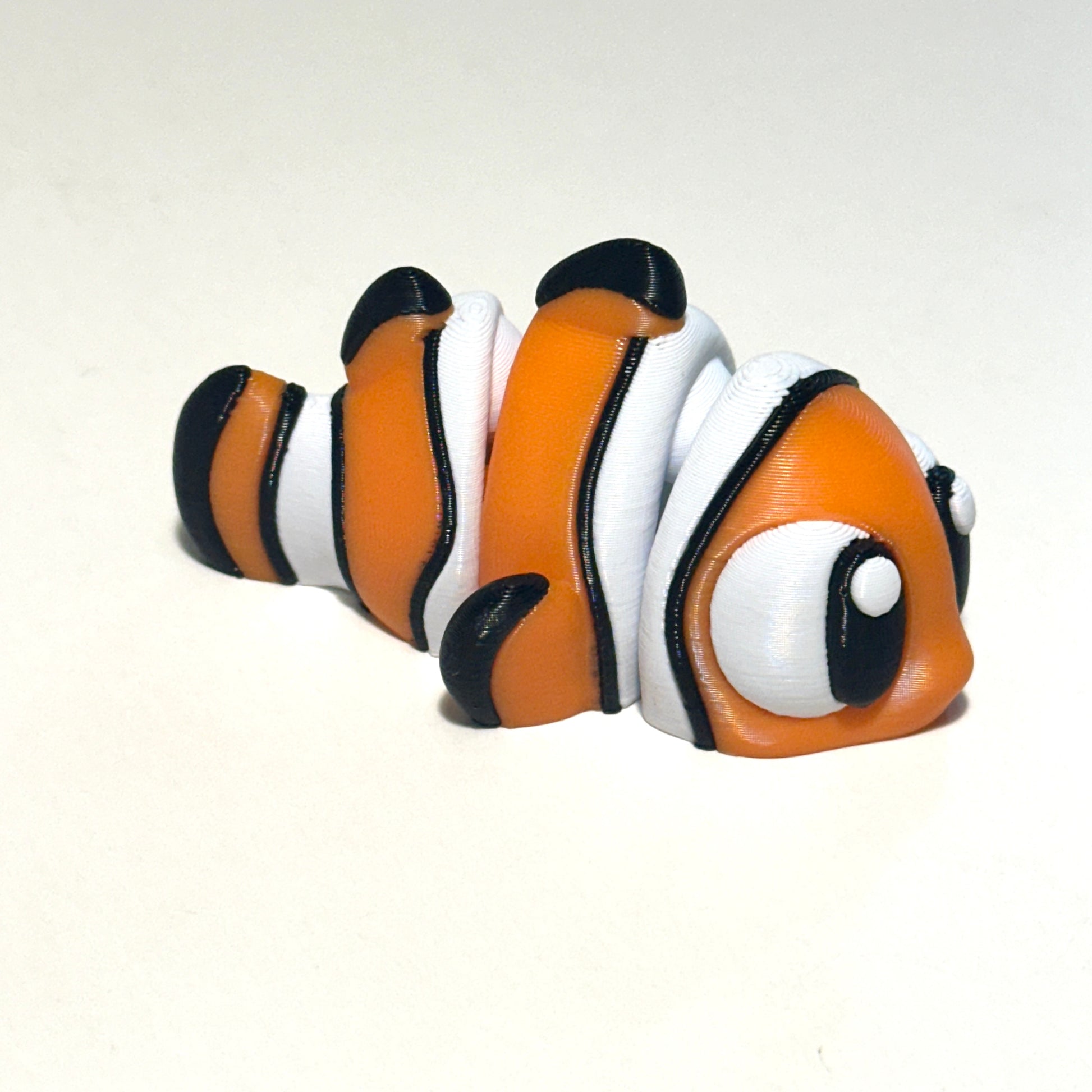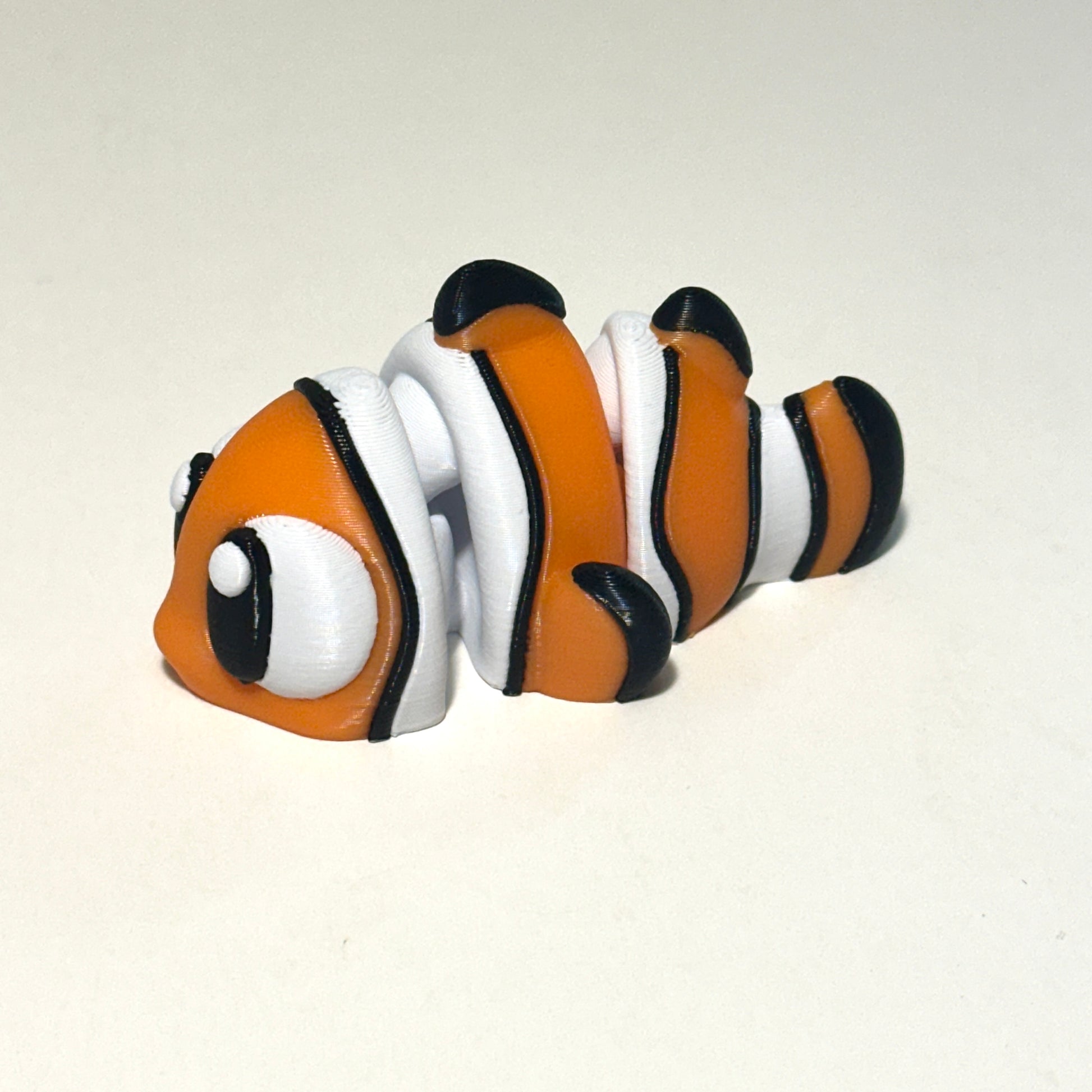 Each Flexi Clownfish is printed in vibrant three-color PLA, giving it a striking and lifelike appearance. The articulated body allows for gentle movement, making it fun to pose and play with. Whether you display it on your shelf, desk, or give it as a gift, this clownfish is sure to draw smiles.