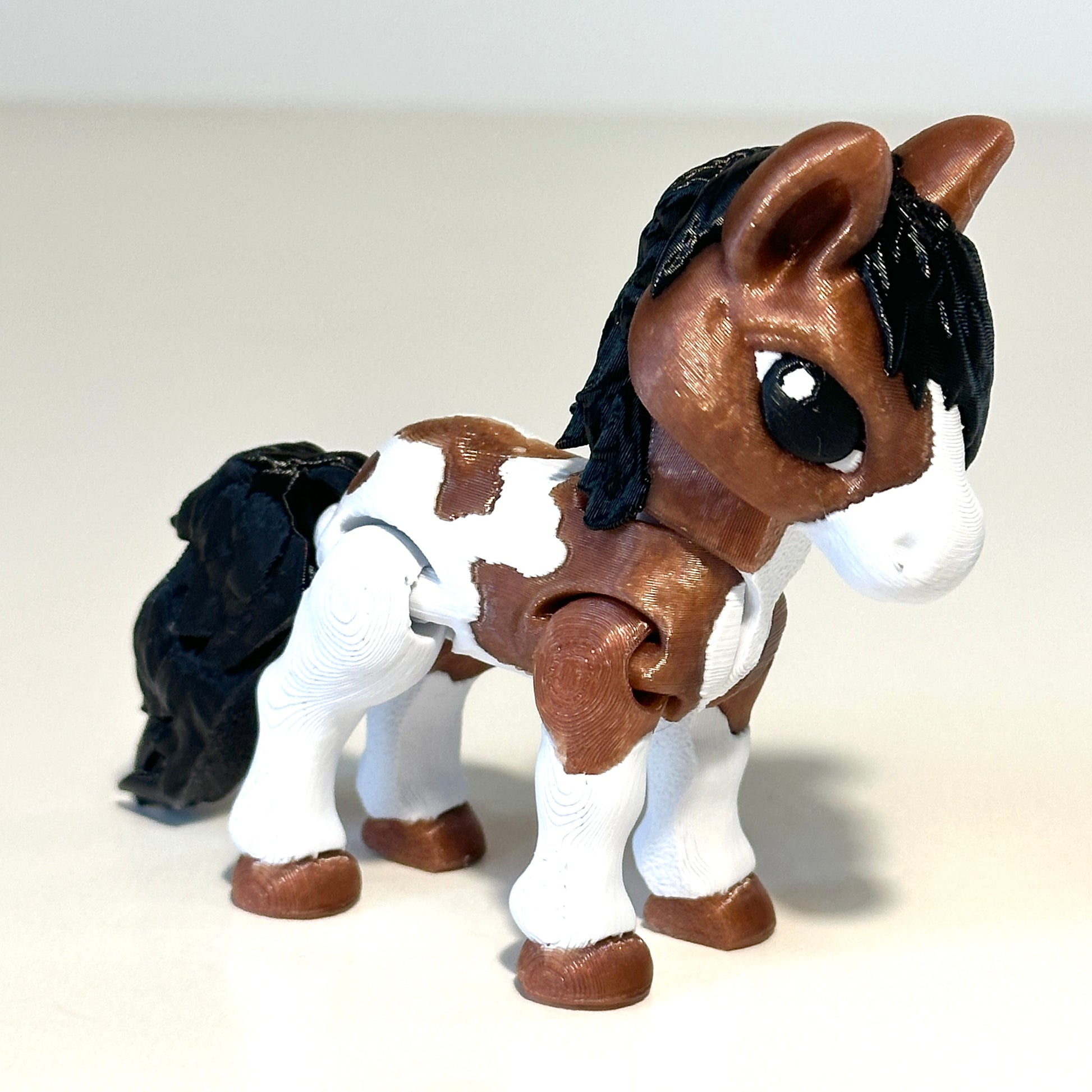 Each Flexi Horse is printed in high-quality PLA plastic, known for being lightweight, durable, and environmentally friendly compared to other plastics. Its strength and smooth finish make it ideal for detailed models like this one.