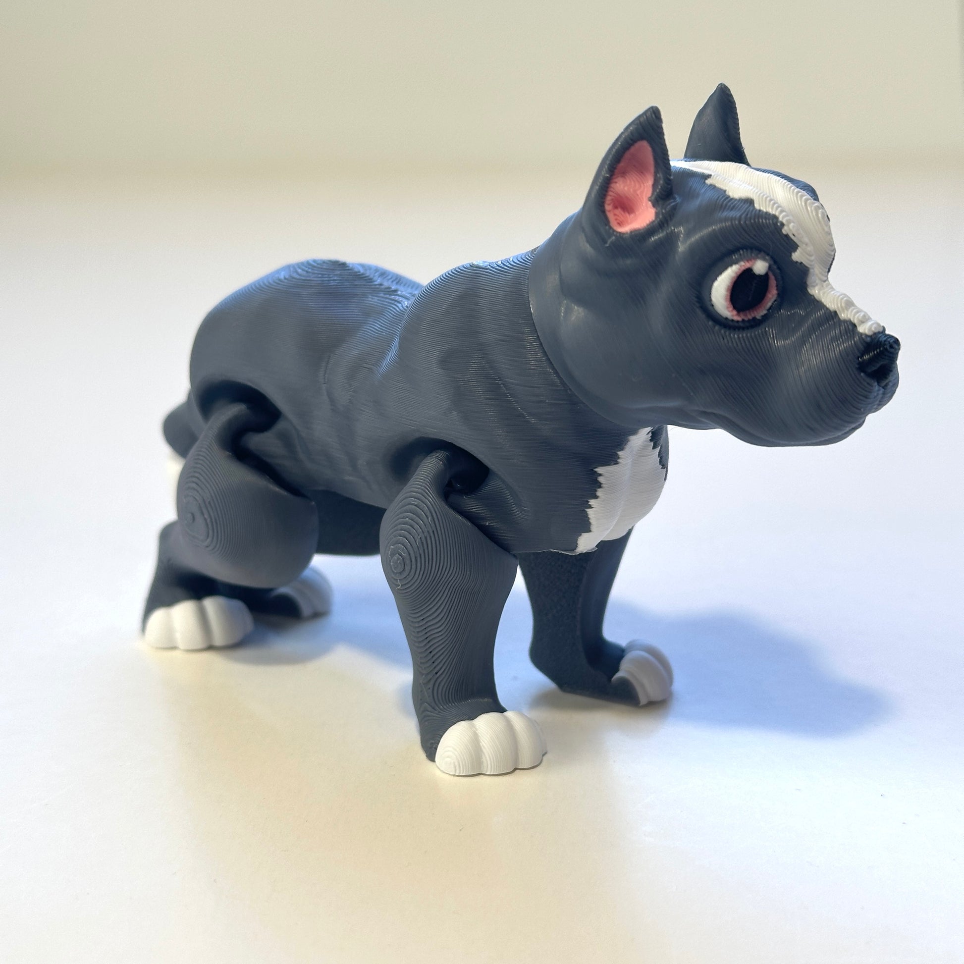 Meet your new favorite desk companion! This 3D Printed Flexi PitBull is fully articulating, allowing for fun and lifelike movement. Designed with four vibrant colors, this unique print captures the strength and charm of the beloved PitBull breed in an eye-catching way.