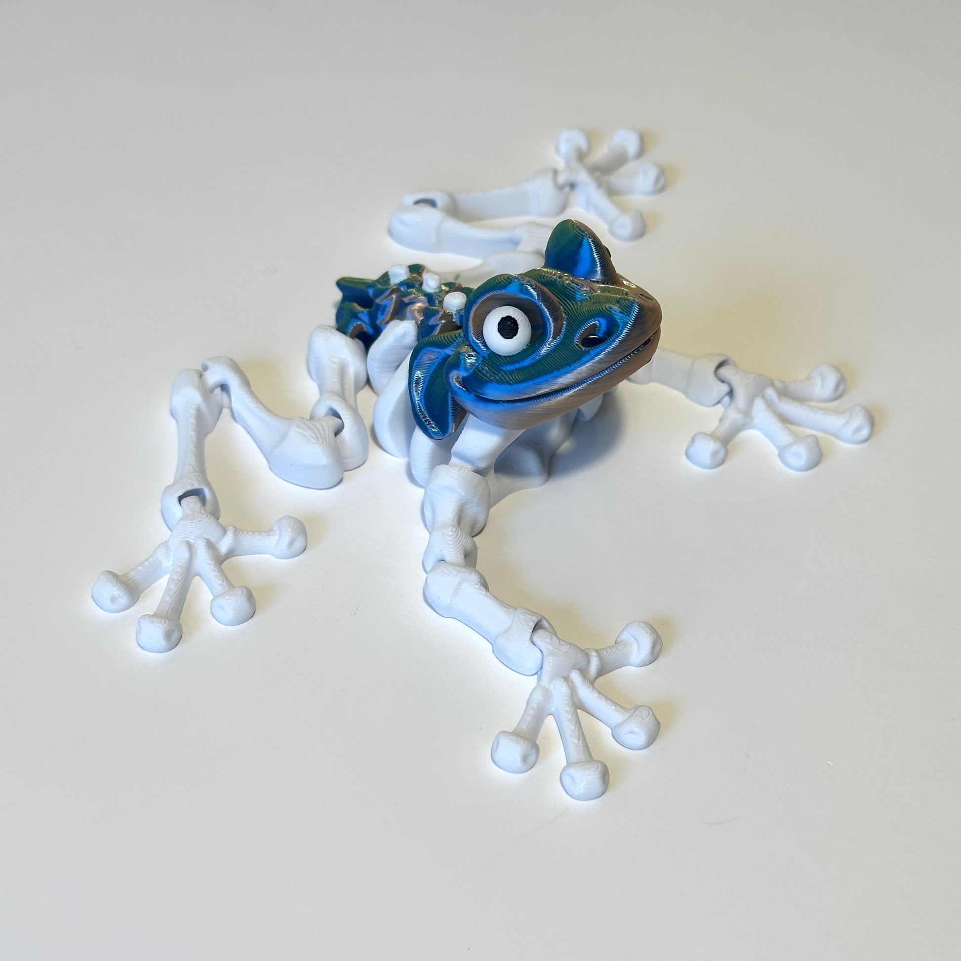 Bring a unique and fun twist to your collection with this 3D Printed Flexi Skeleton Frog, a fully articulating model that’s perfect for display, play, or gifting! Measuring approximately 6 inches long, this spooky yet charming frog has flexible joints that allow you to pose it in different positions, making it a versatile addition to any setting.