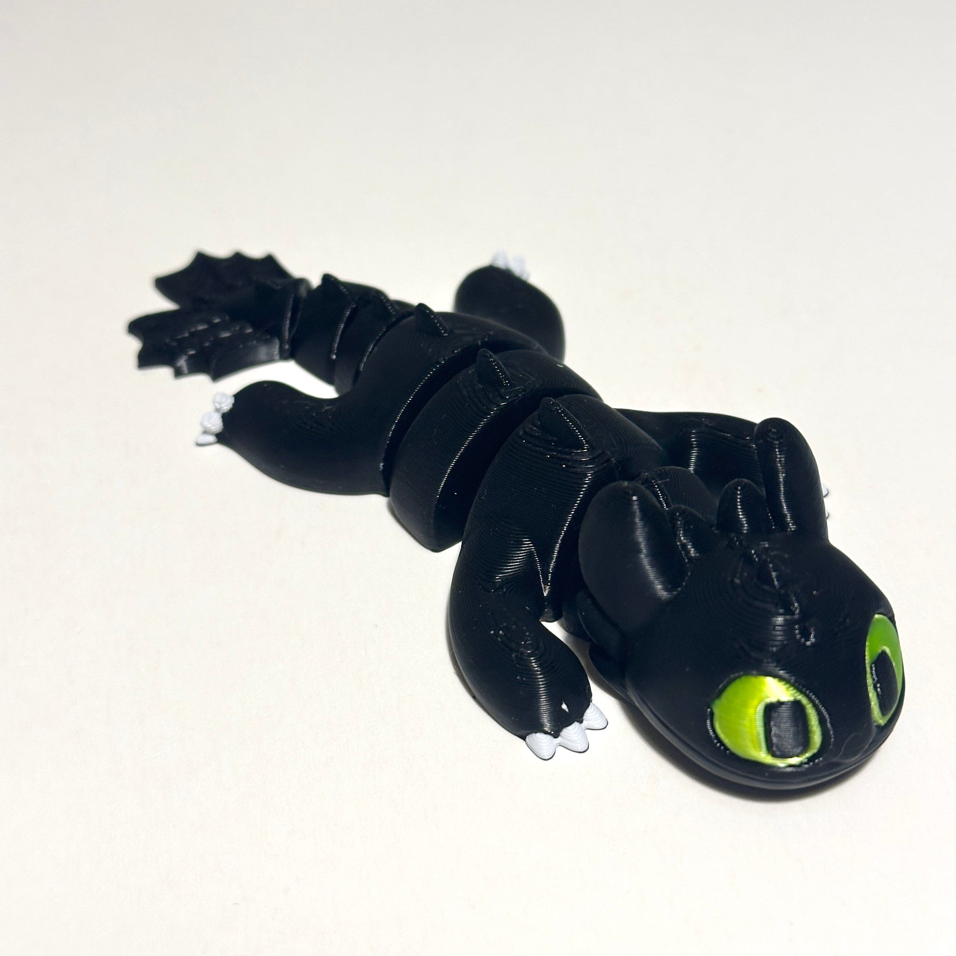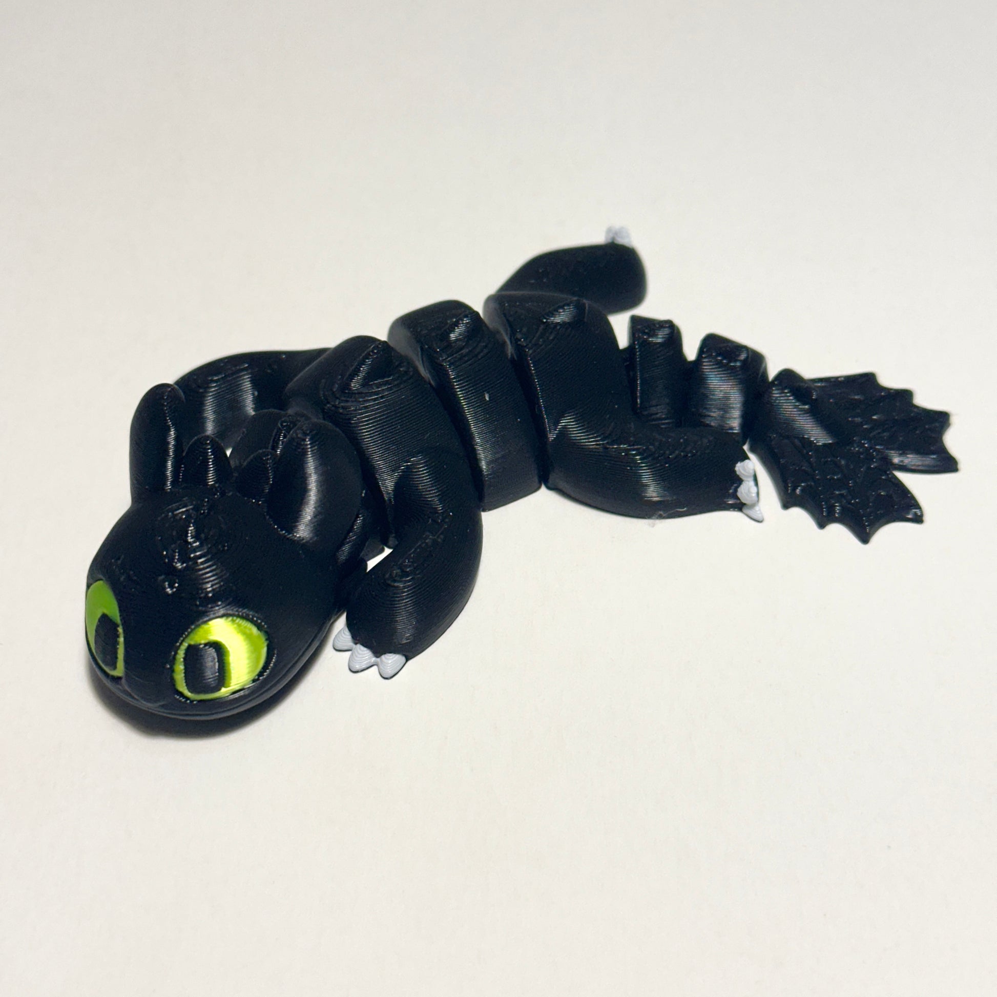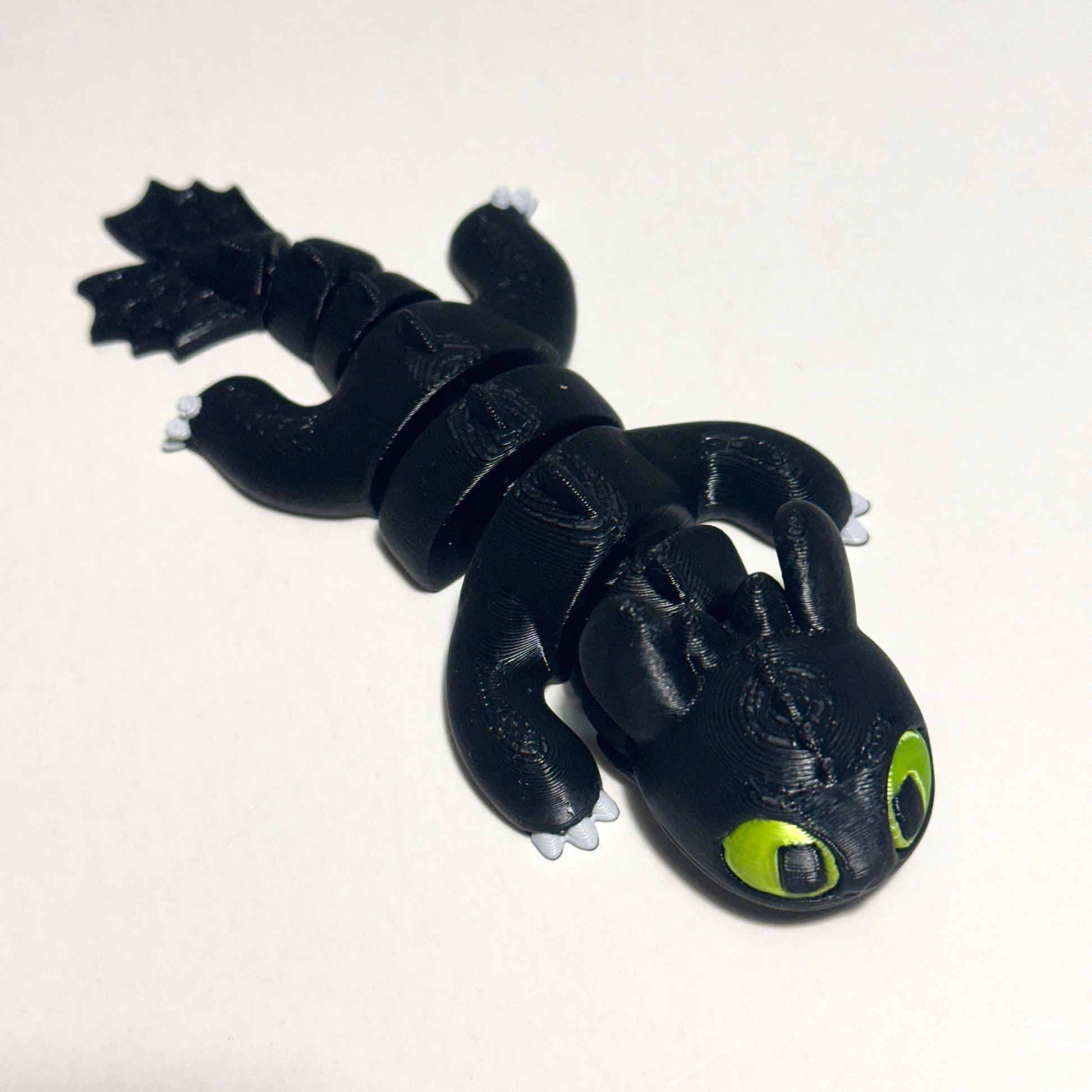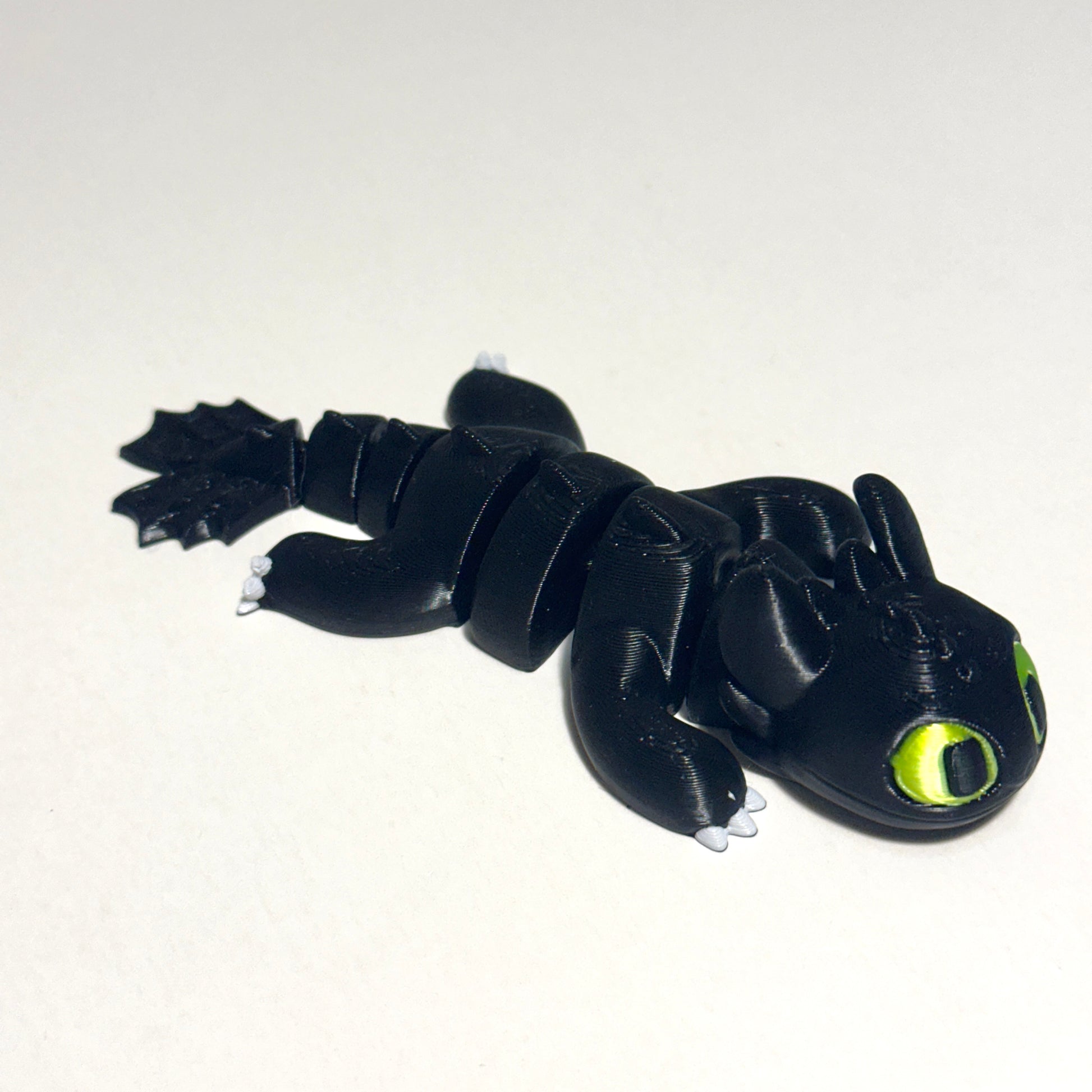 Bring a touch of magic to your collection with this adorable 3D Printed Flexi Toothless Dragon! Inspired by the beloved Night Fury, this charming dragon is fully articulating and ready to swoop into your heart. Measuring approximately 4.5 inches long, it’s the perfect desk companion, shelf display, or unique gift for any dragon lover.