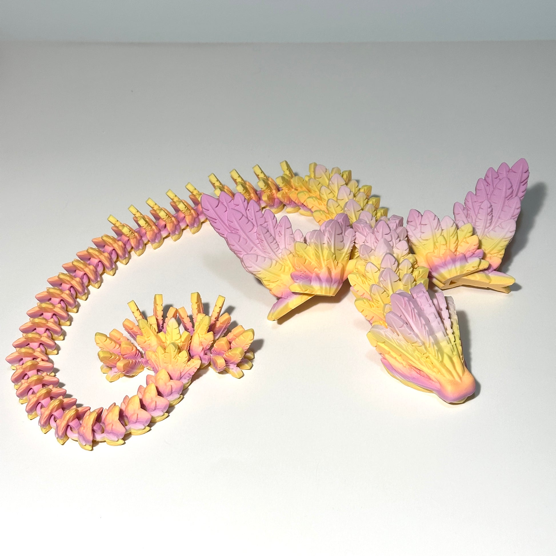 Bring home a touch of magic with this stunning 3D printed Flying Serpent! Inspired by mythical dragons, this one-of-a-kind creature features intricate feather-like details along its fully articulating body, creating an awe-inspiring display of craftsmanship. Measuring approximately 27 inches long, this serpent-dragon hybrid is the perfect statement piece for collectors, fantasy lovers, or anyone seeking a unique gift.