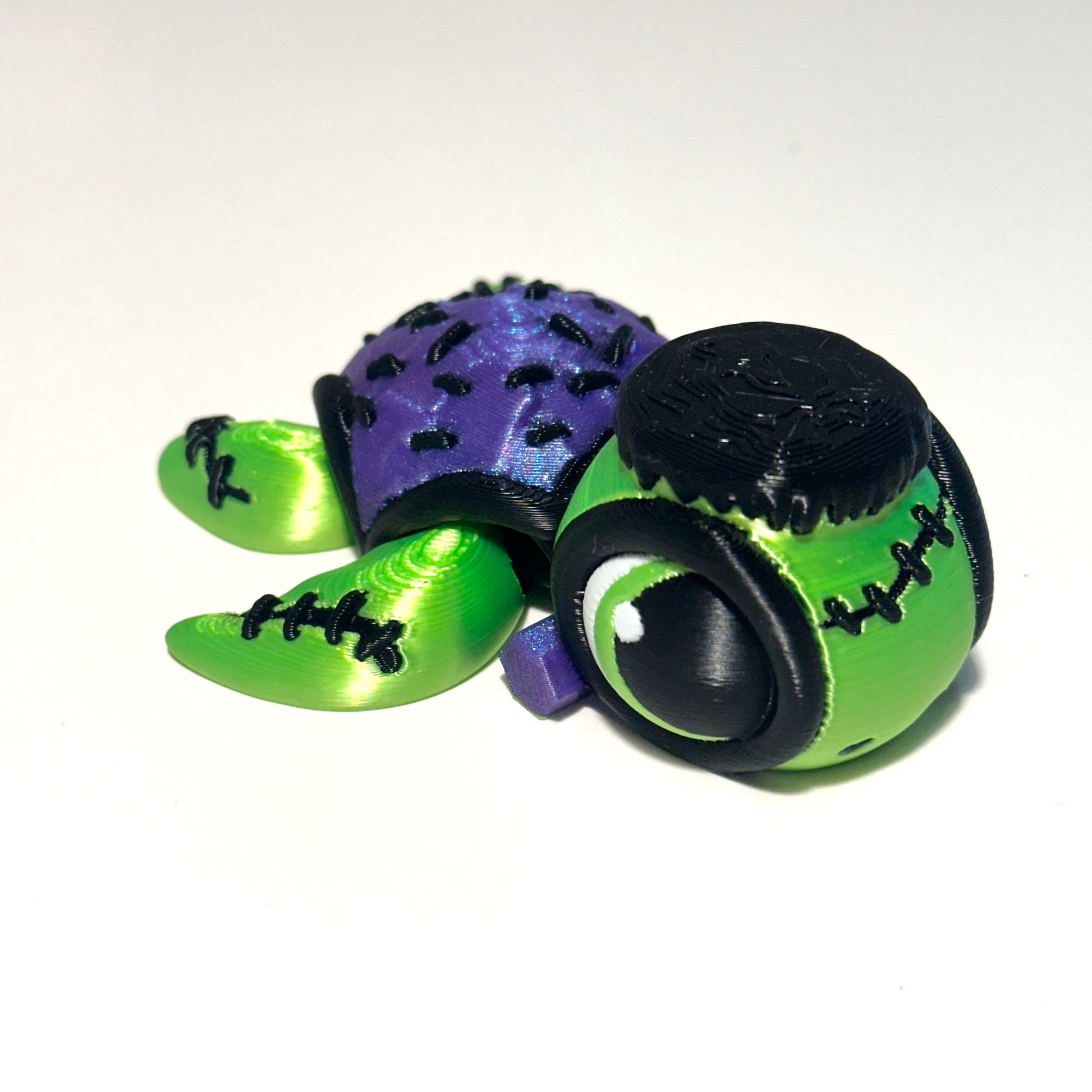 Meet the Frankenturtle – a spooky-cute, monster-inspired turtle that brings a little eerie charm to your collection! This unique critter is fully articulating, making it fun to pose, fidget with, or proudly display on your shelf. With bold bolts, patch-like detailing, and a design that screams personality, the Frankenturtle is ready to march right into your heart.