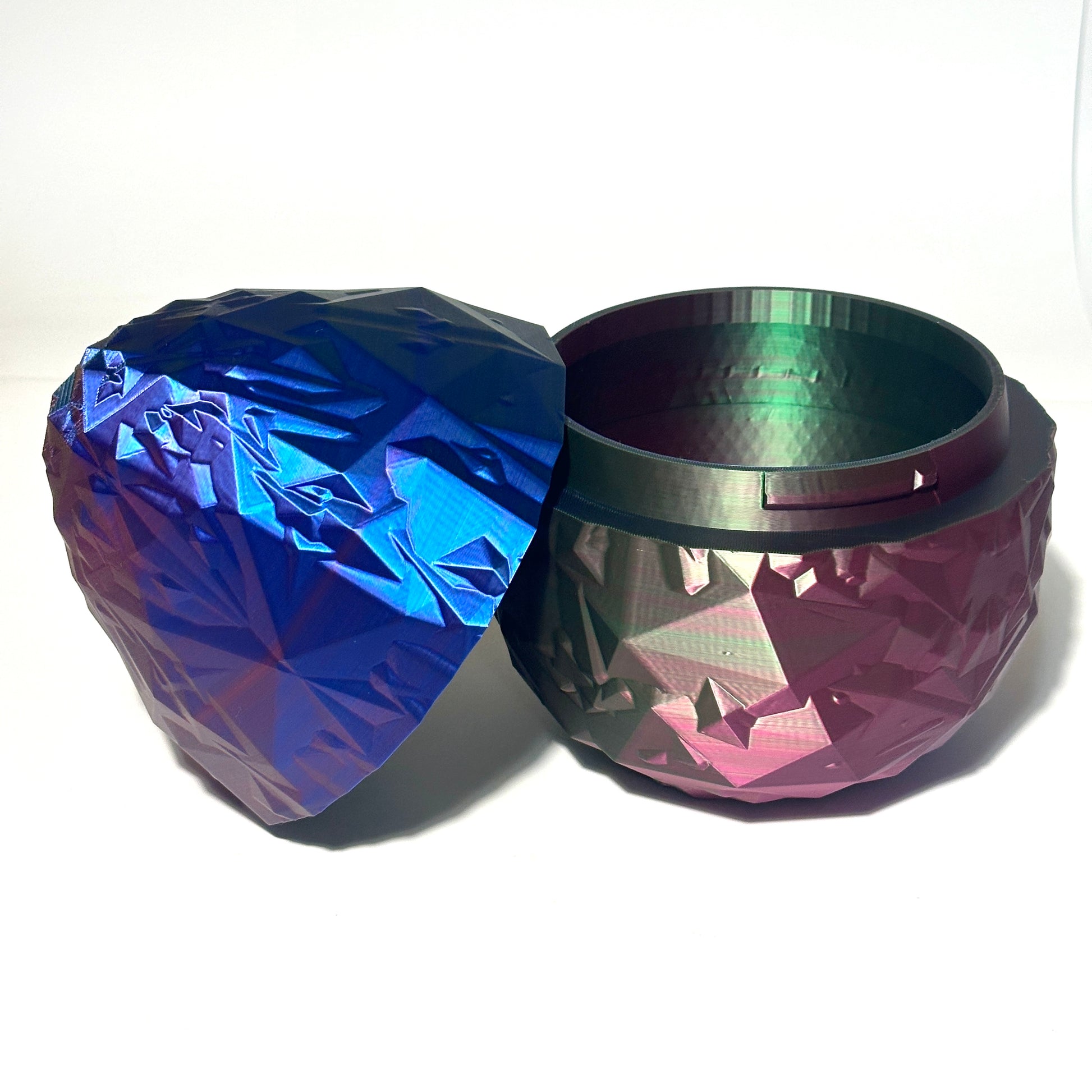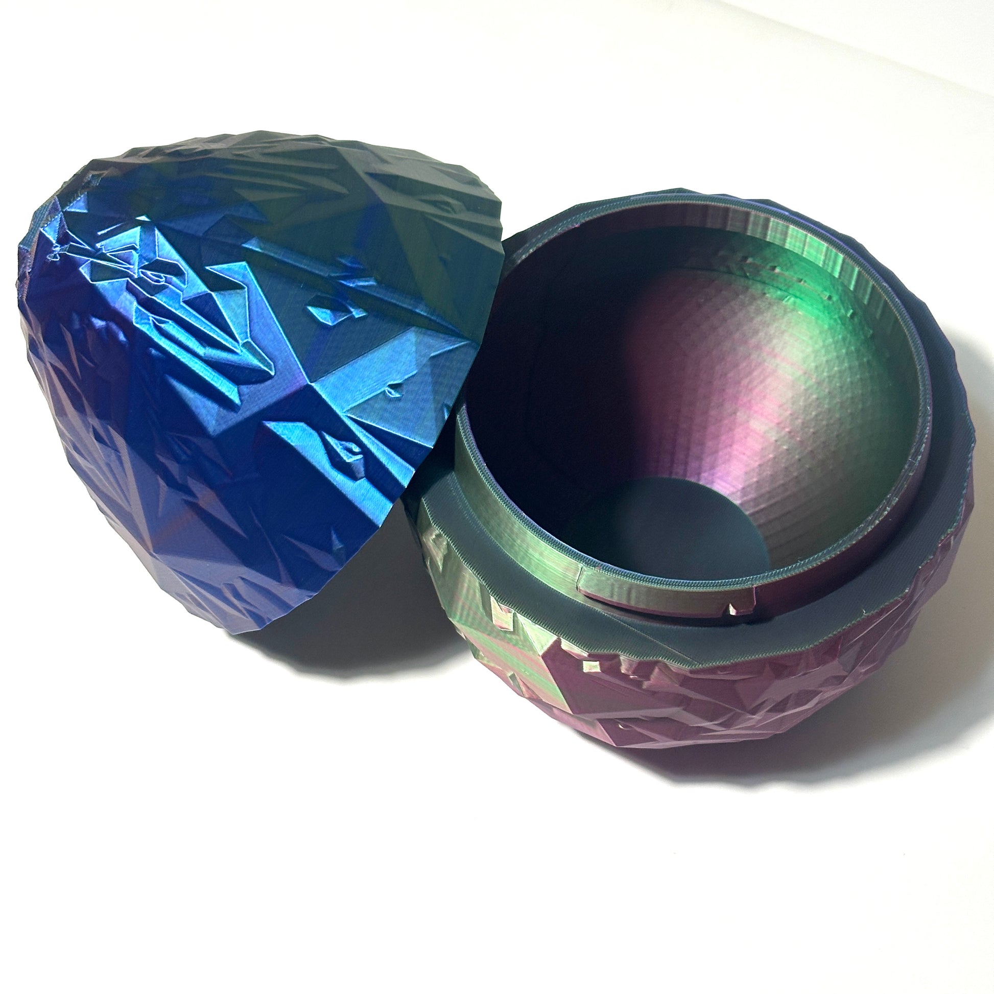 Discover the wonder of our 3D printed Giant Egg, a captivating and versatile piece perfect for display, storage, or gifting. Standing approximately 8.5 inches tall, this egg opens and closes, making it not only a striking decorative item but also functional for holding small treasures, trinkets, or surprises.