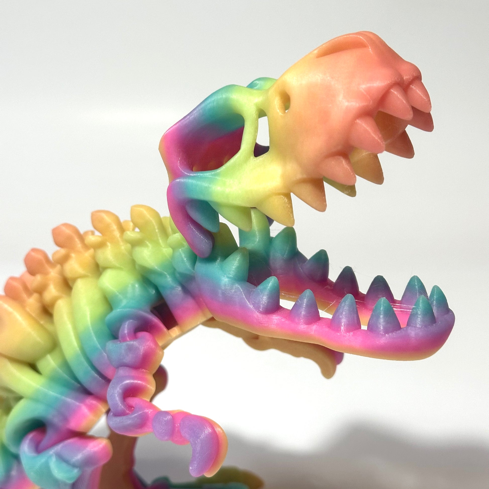 - Unique Variations: Due to the 3D printing process, each Giant Flexi T-Rex is unique. There may be small imperfections, and the colors, especially rainbow colors, may not match the photos exactly. These variations add to the charm and individuality of each piece.