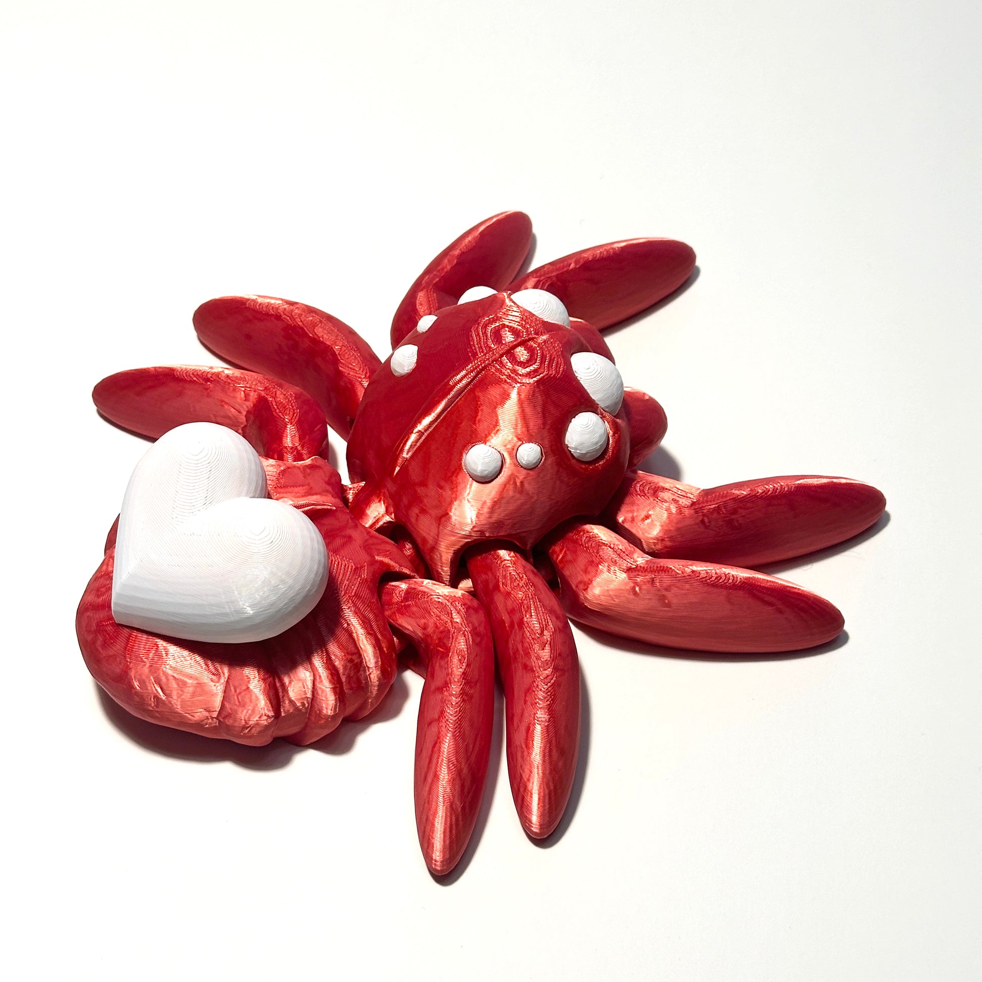 Unleash the charm of the Giant Heart Spider, a striking and unique 3D printed creation that blends the mysterious allure of arachnids with a touch of whimsy. This stunning piece features a beautifully crafted heart on its back, making it a perfect statement piece for any collection or decor. Measuring approximately 8 inches in length, this fully articulating spider allows for dynamic posing, ensuring it’s as versatile as it is captivating.