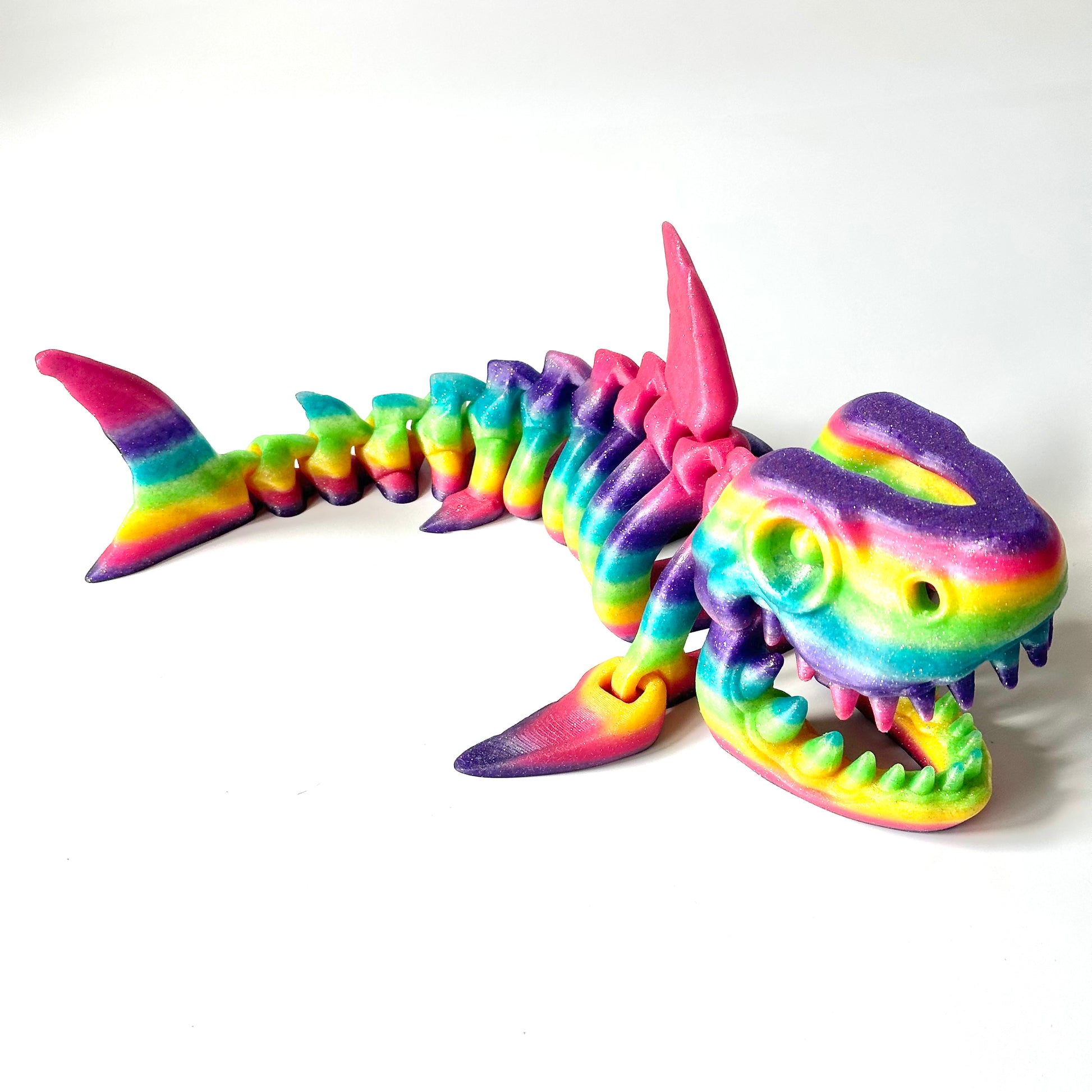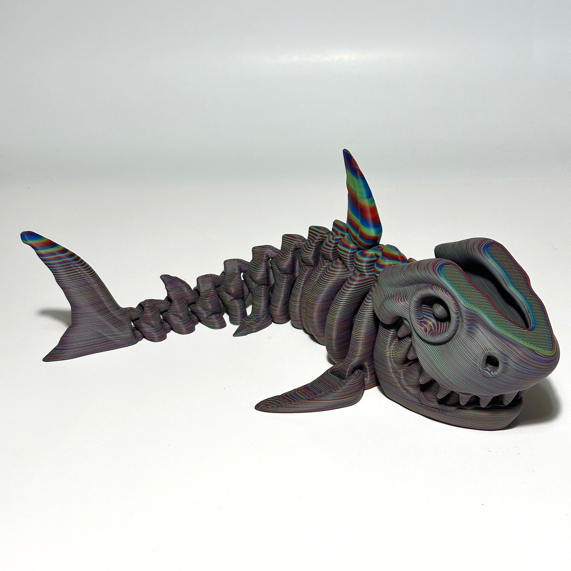 - Color Variations: Due to the 3D printing process, there may be small imperfections, and colors, especially rainbow hues, may not match the photos exactly. Each shark is unique and may have slight variations in color and finish.