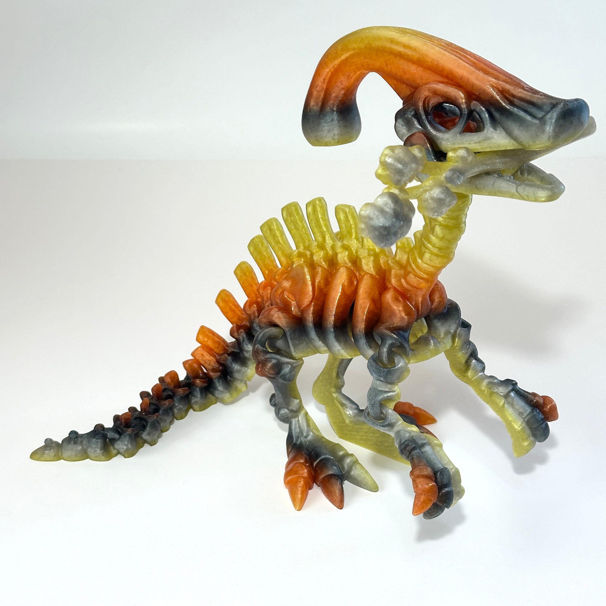 Bring prehistoric charm to your collection with this fully articulating 3D Printed Skeleton Parasaurolophus, a unique blend of science, artistry, and fun movement. Whether you’re a dinosaur enthusiast, a collector of flexi creatures, or simply love eye-catching decor, this skeletal dino is sure to stand out.