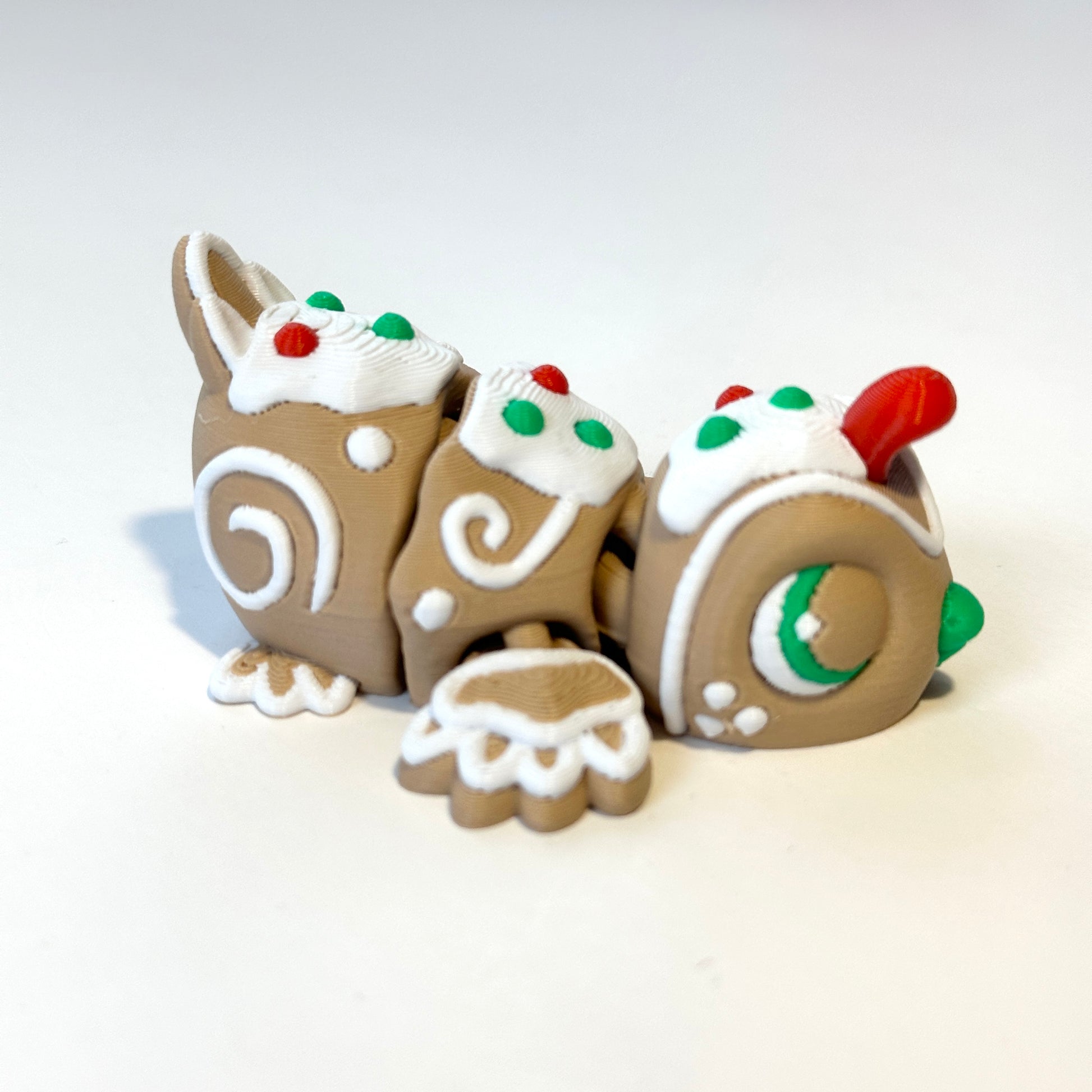 This model is printed using four beautiful filament colors, giving it a rich, gingerbread-inspired look with delightful details that make it stand out. Each one is crafted using high-quality PLA, an eco-friendly, lightweight, and durable material known for producing clean, vibrant prints—perfect for collectible critters like this one.