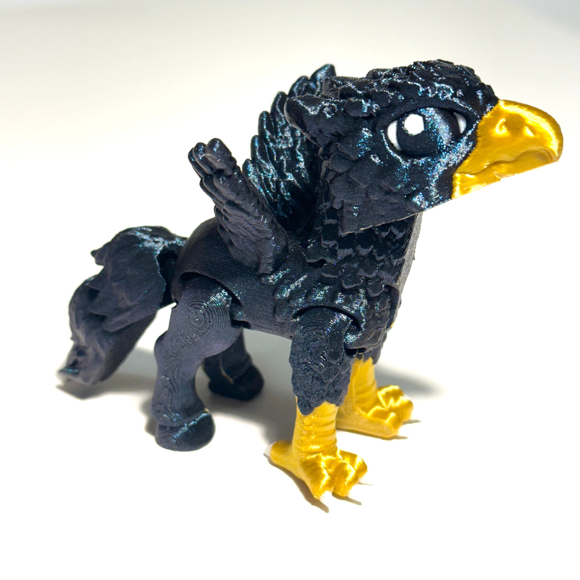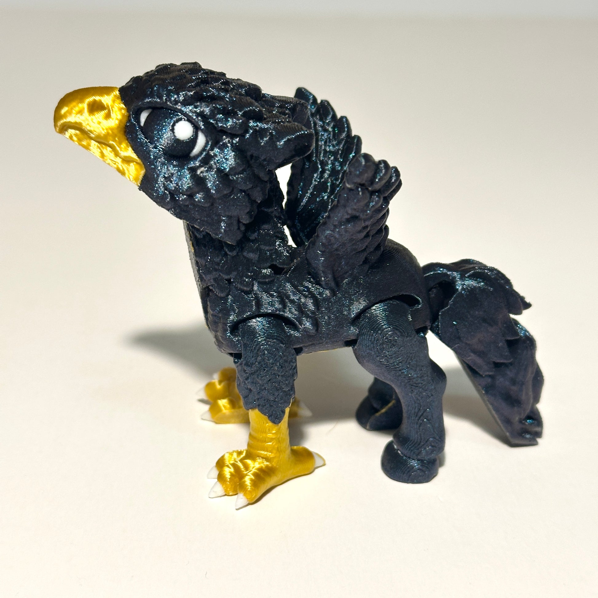 Bring a touch of myth and magic to your collection with this fully articulating 3D printed Hippogriff! Measuring approximately 6 inches long, this majestic creature blends the elegance of an eagle with the strength of a horse—now brought to life in vivid, multi-color PLA filament.