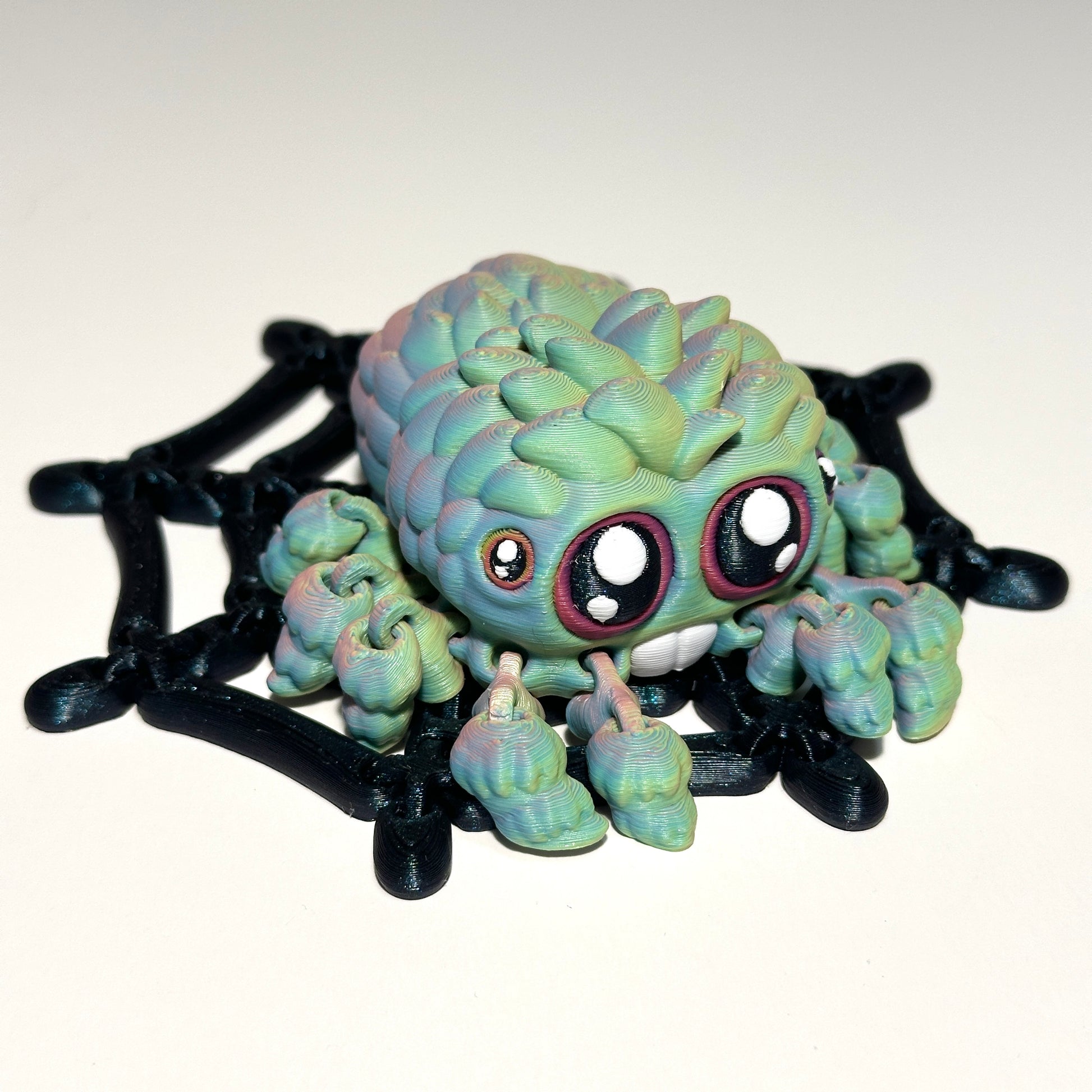 - Due to the nature of the 3D printing process, there may be small imperfections, and colors—especially rainbow colors—may vary from the photos. Each piece is uniquely crafted, ensuring that no two spiders are exactly alike.
