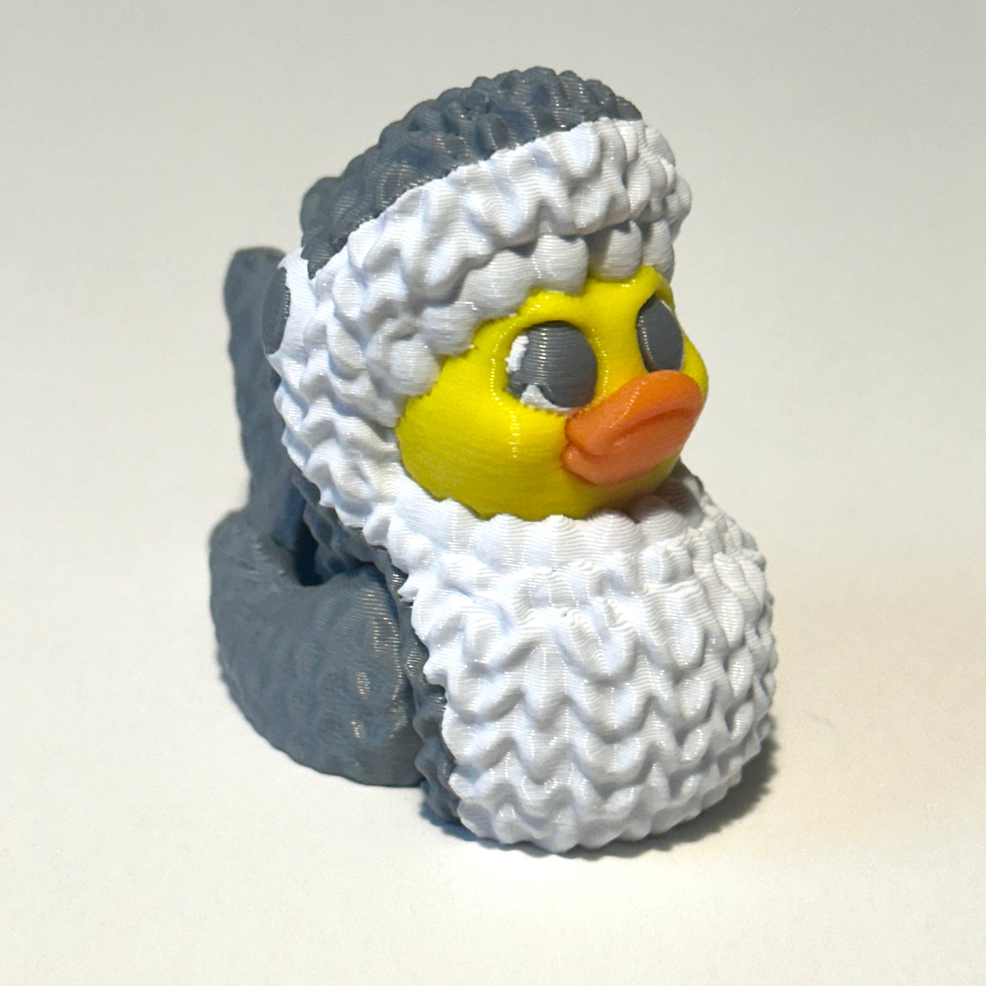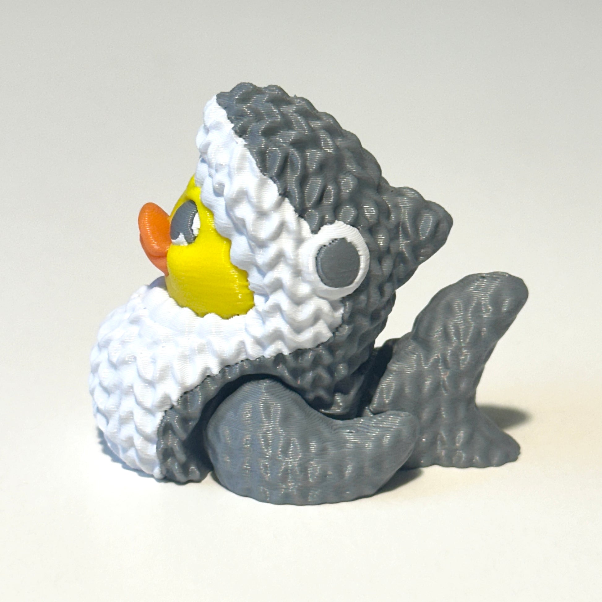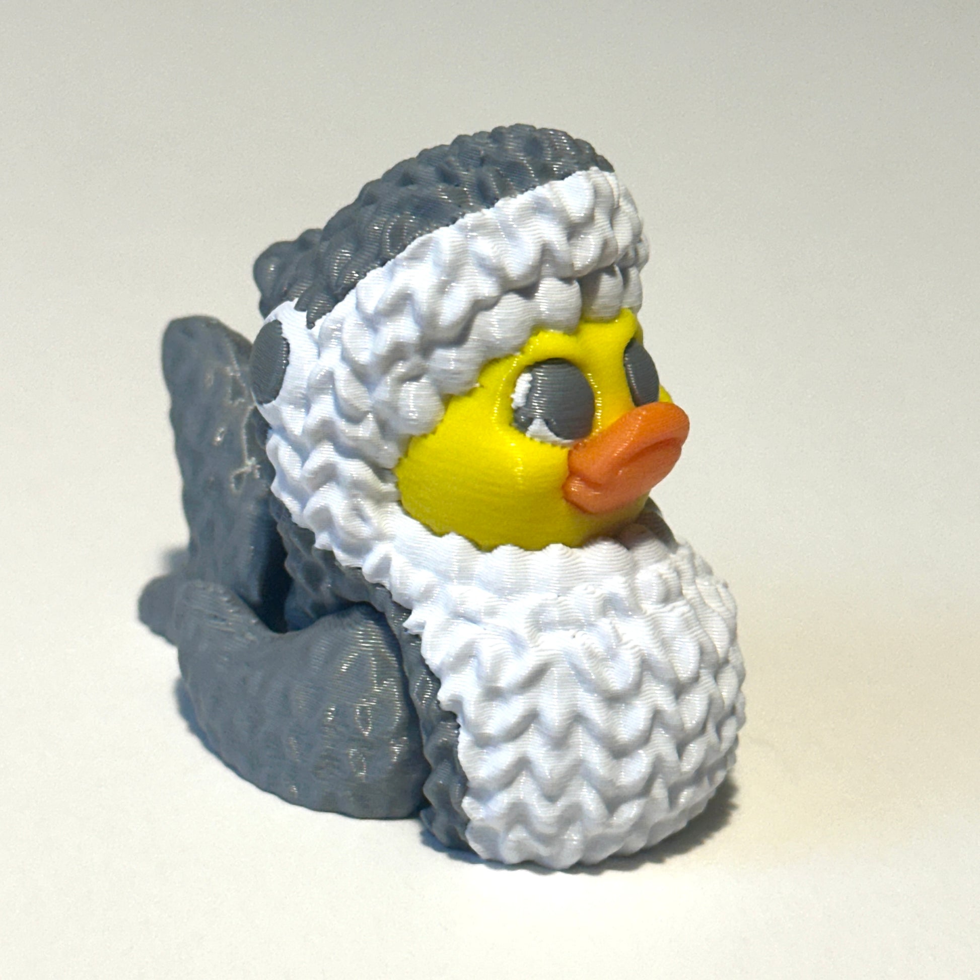 Add a splash of fun and charm to your collection with this 3D Printed Knit Shark Duck! This adorable and quirky creation combines the cuteness of a duck with the fierceness of a shark, all wrapped up in a unique knit-style design. Standing at approximately 2 inches tall, it’s the perfect size for a desk buddy, display piece, or a playful gift.