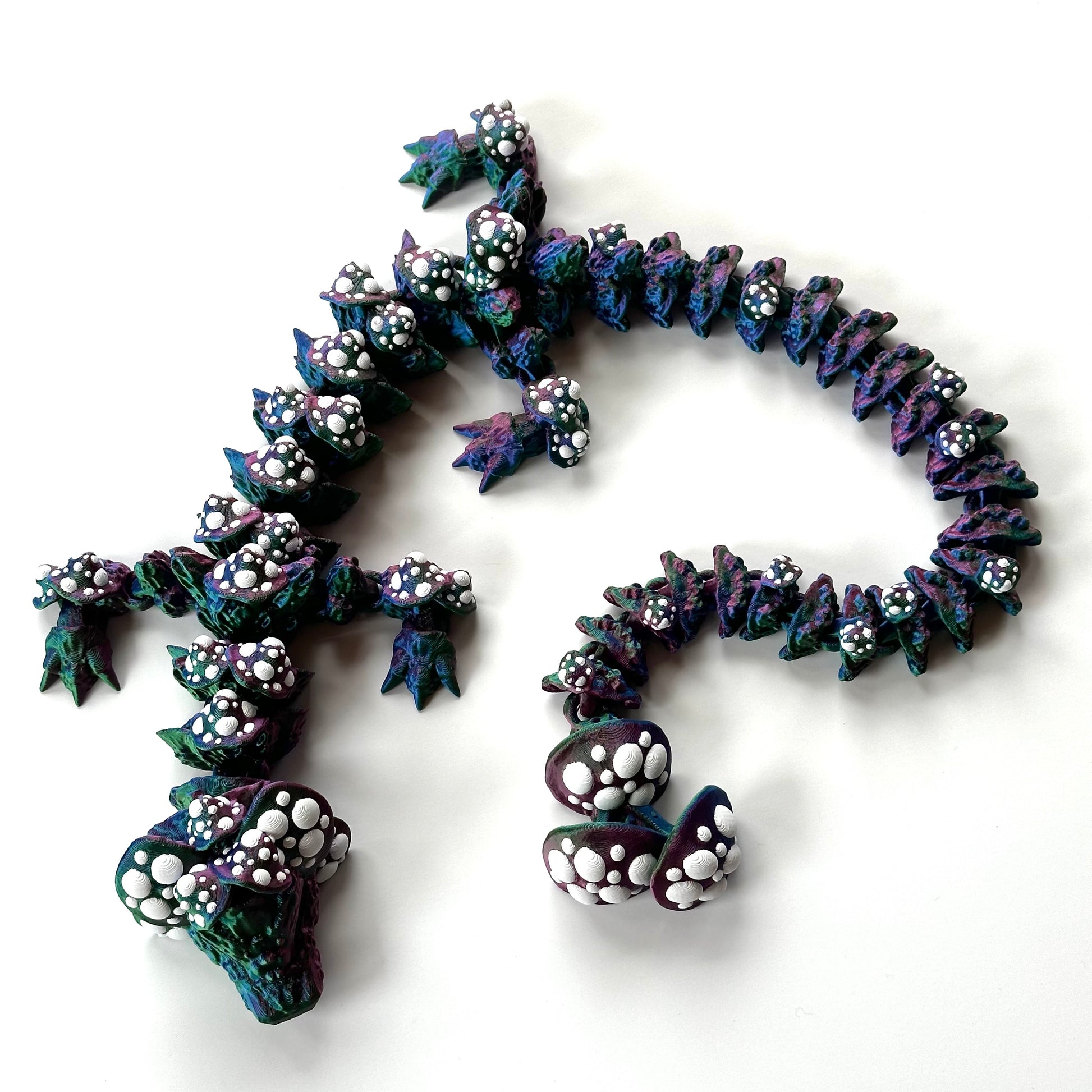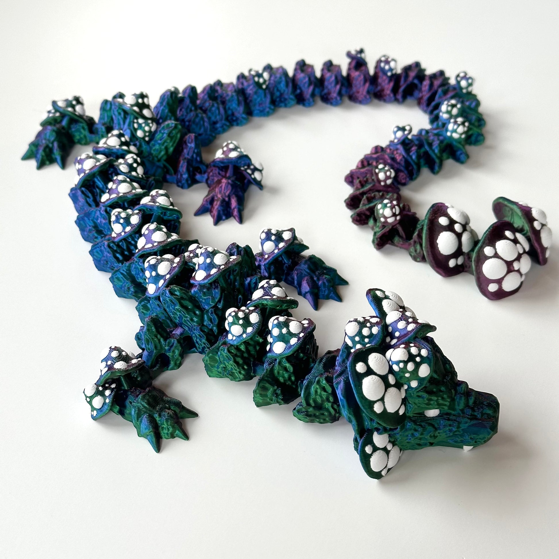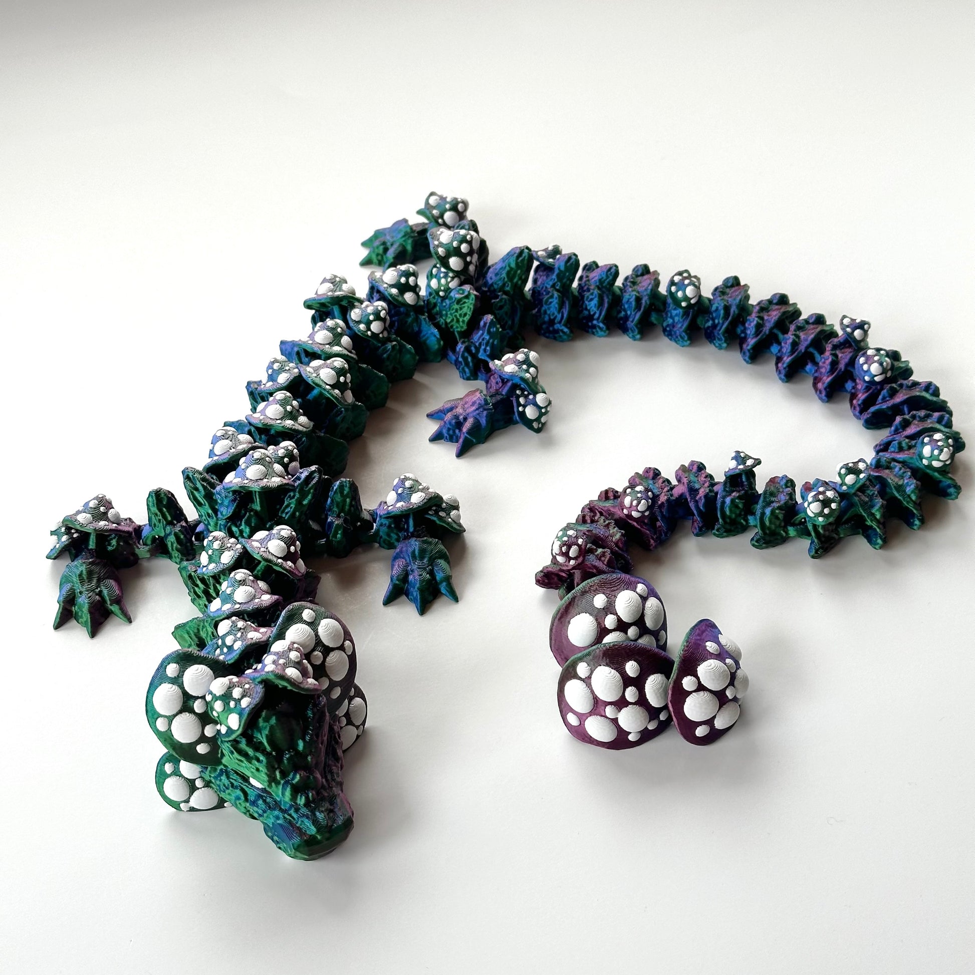 At an impressive length of 25 inches, this Large Mushroom Dragon is a statement piece that commands attention and sparks the imagination. Each dragon is meticulously crafted using high-quality PLA material, ensuring durability and a smooth, professional finish that showcases every intricate detail.
