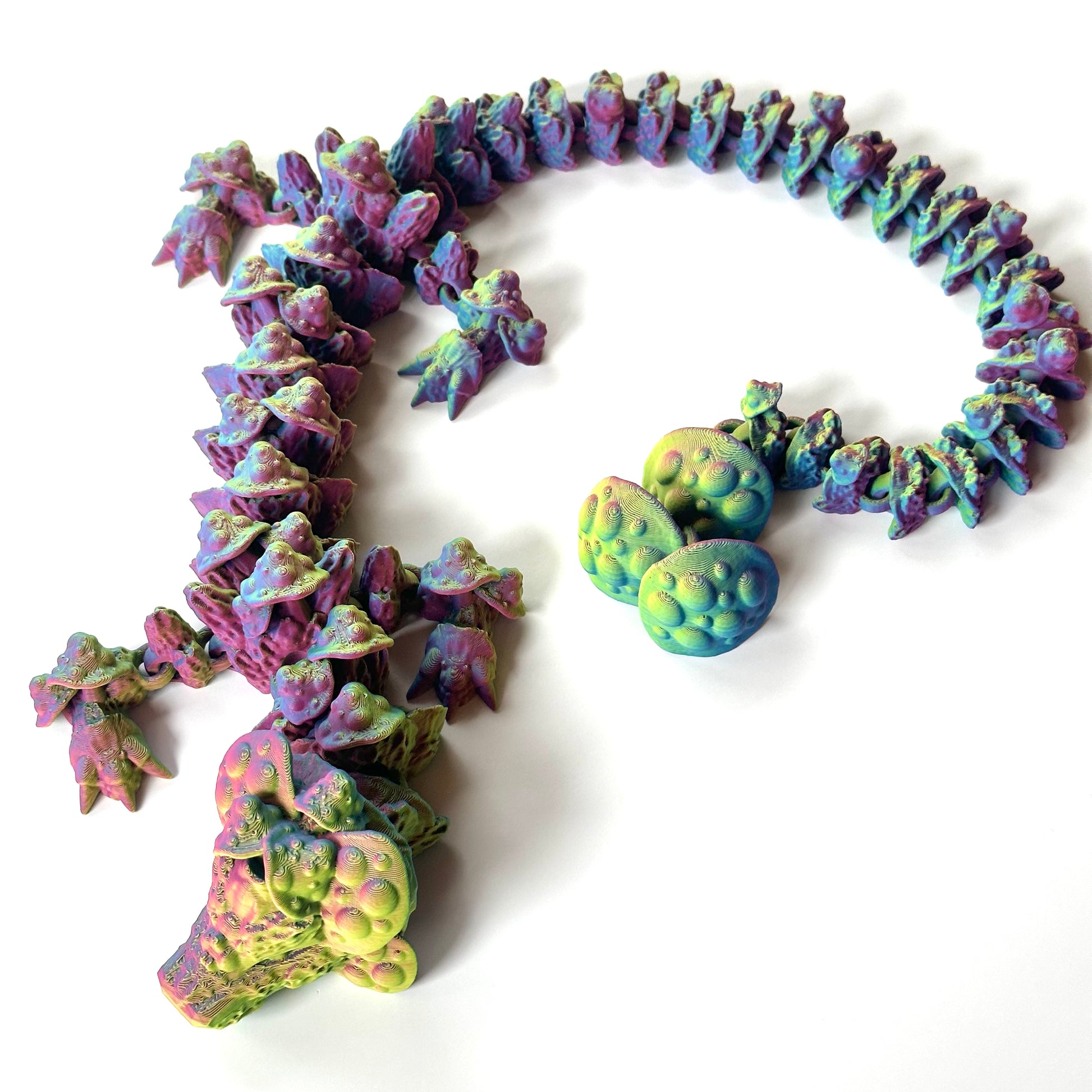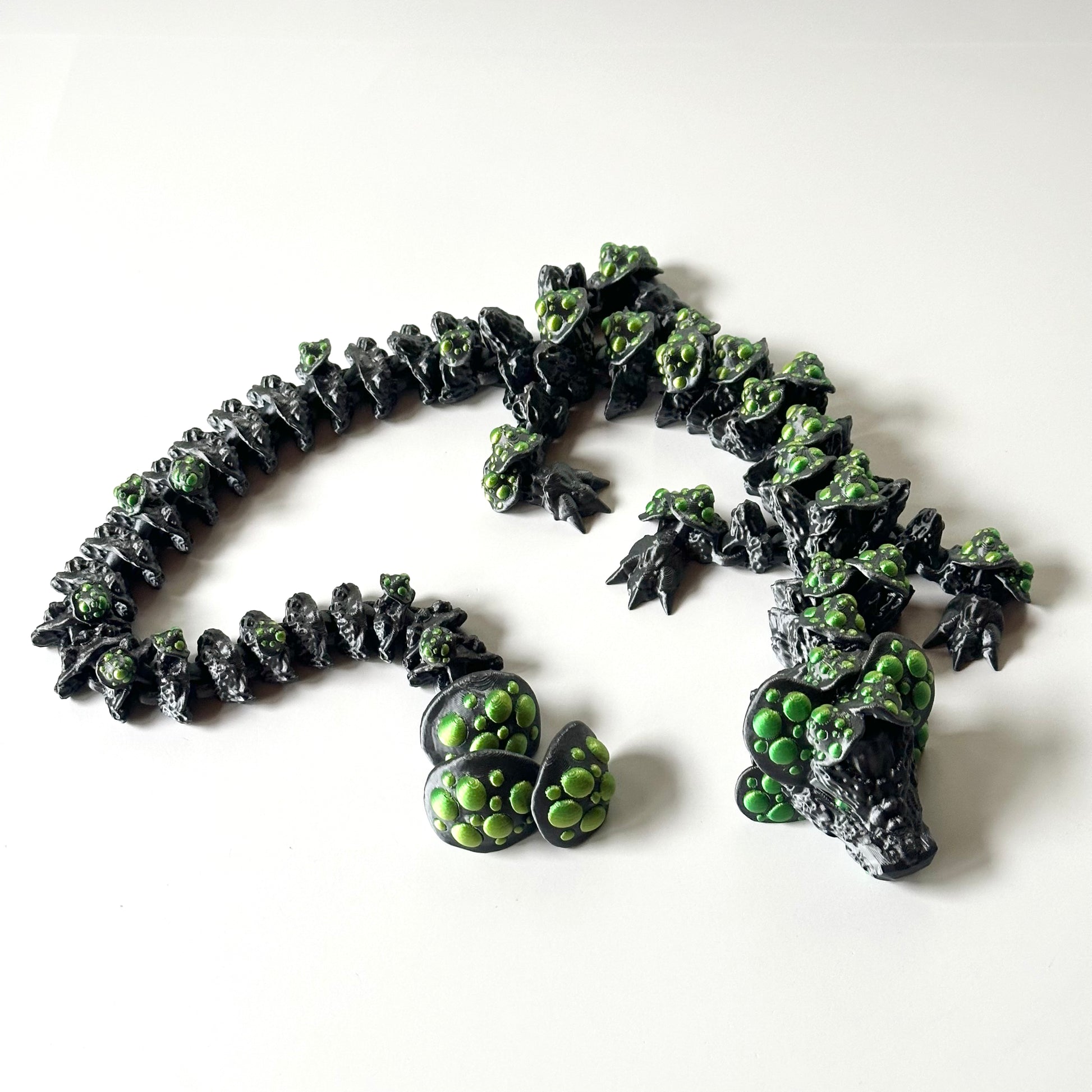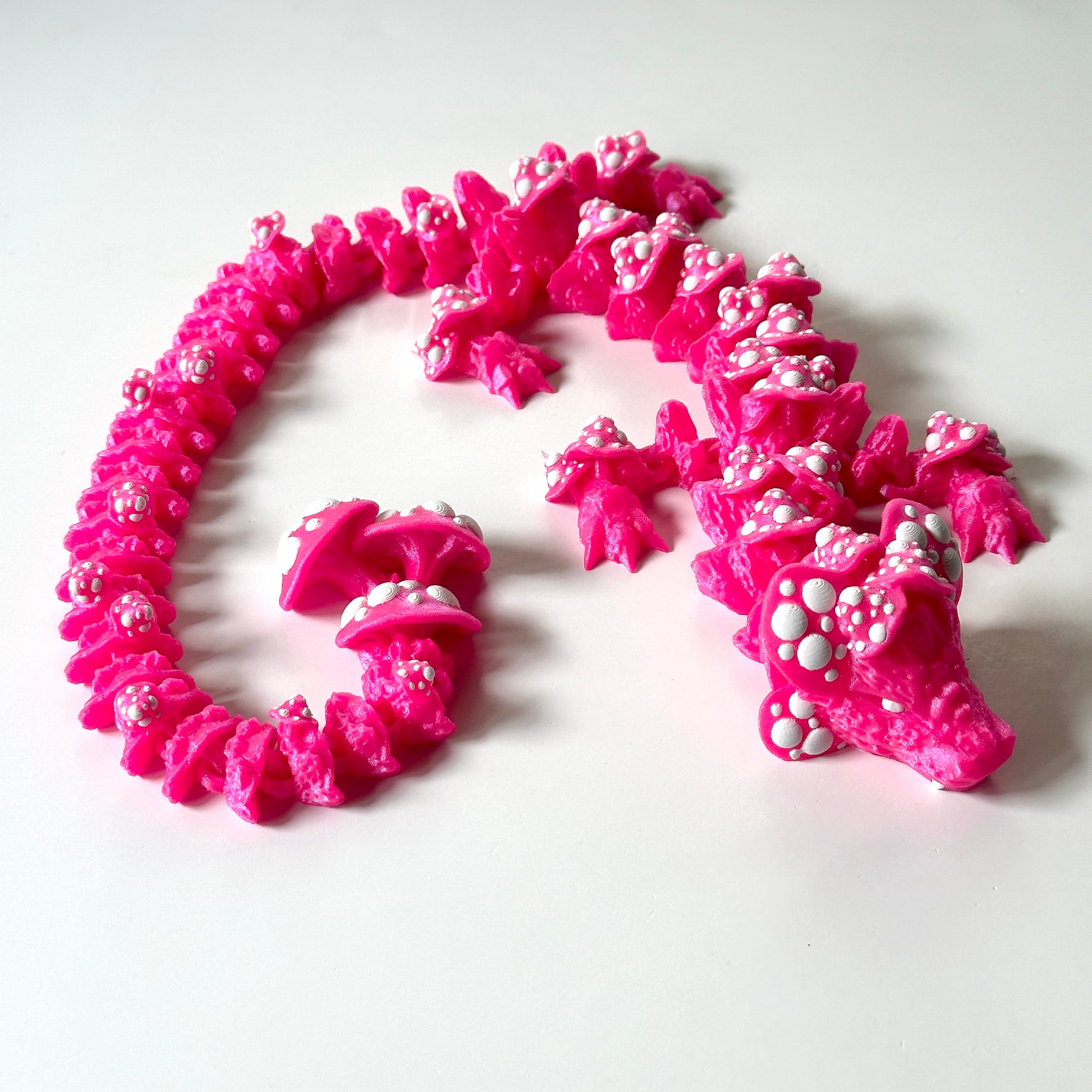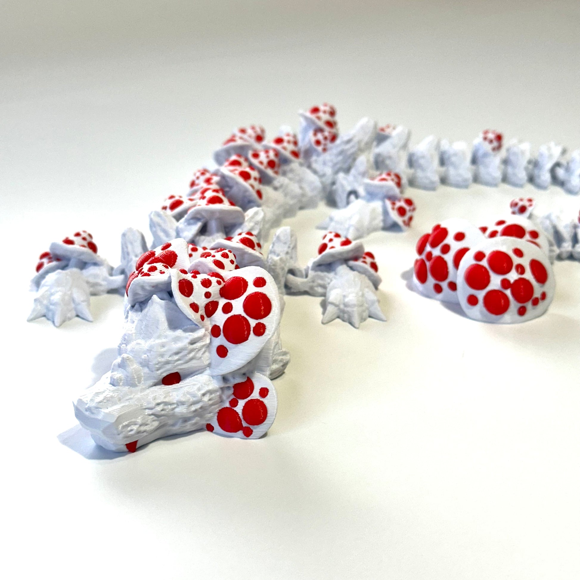 At an impressive length of 25 inches, this Large Mushroom Dragon is a statement piece that commands attention and sparks the imagination. Each dragon is meticulously crafted using high-quality PLA material, ensuring durability and a smooth, professional finish that showcases every intricate detail.