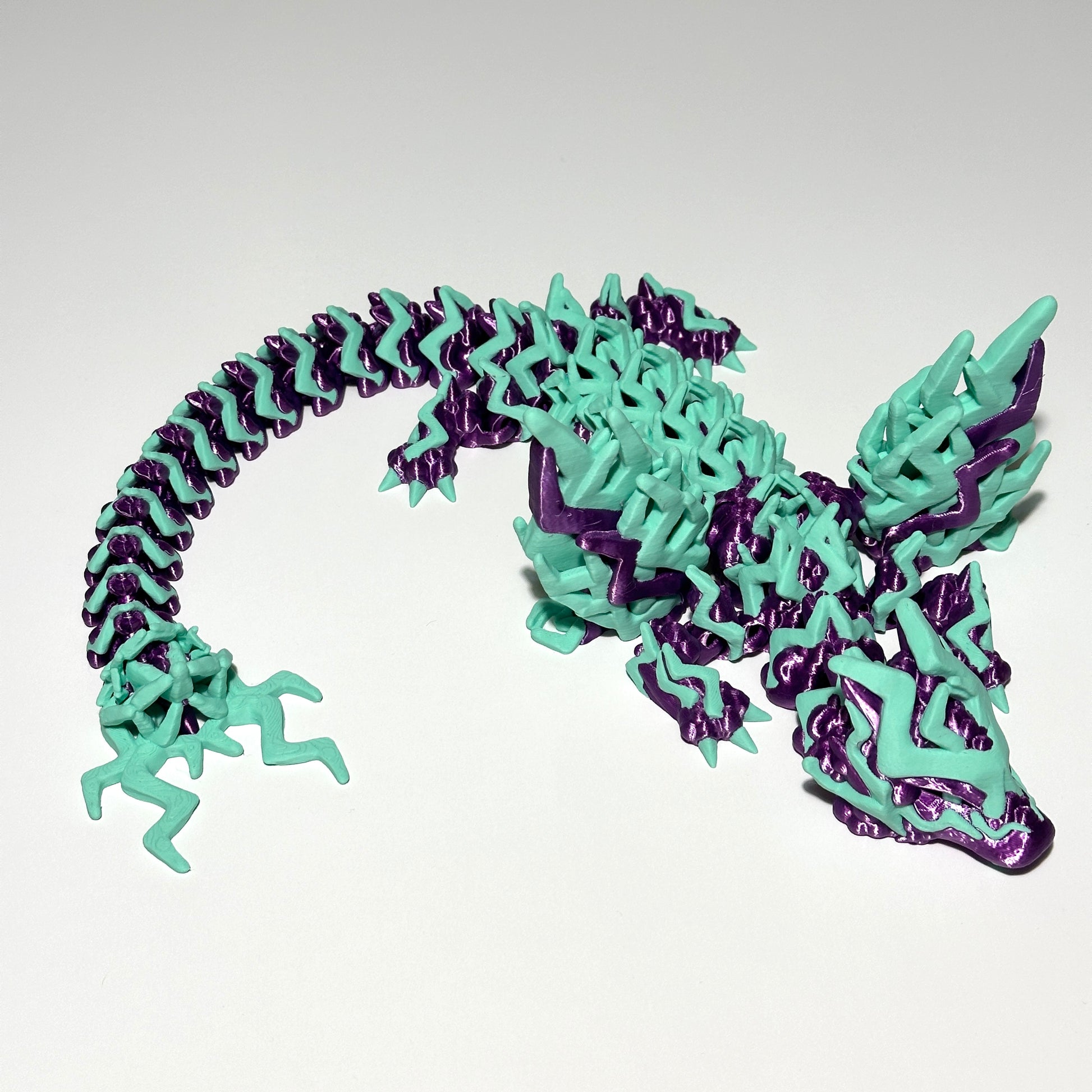 Unleash the power of the storm with our 3D Printed Storm Wing Dragon! This stunning, fully articulating dragon is adorned with intricate lightning bolts that cover its entire body, giving it a truly electrifying appearance. Measuring approximately 19 inches long, this dragon is an impressive piece that will captivate anyone who sees it.