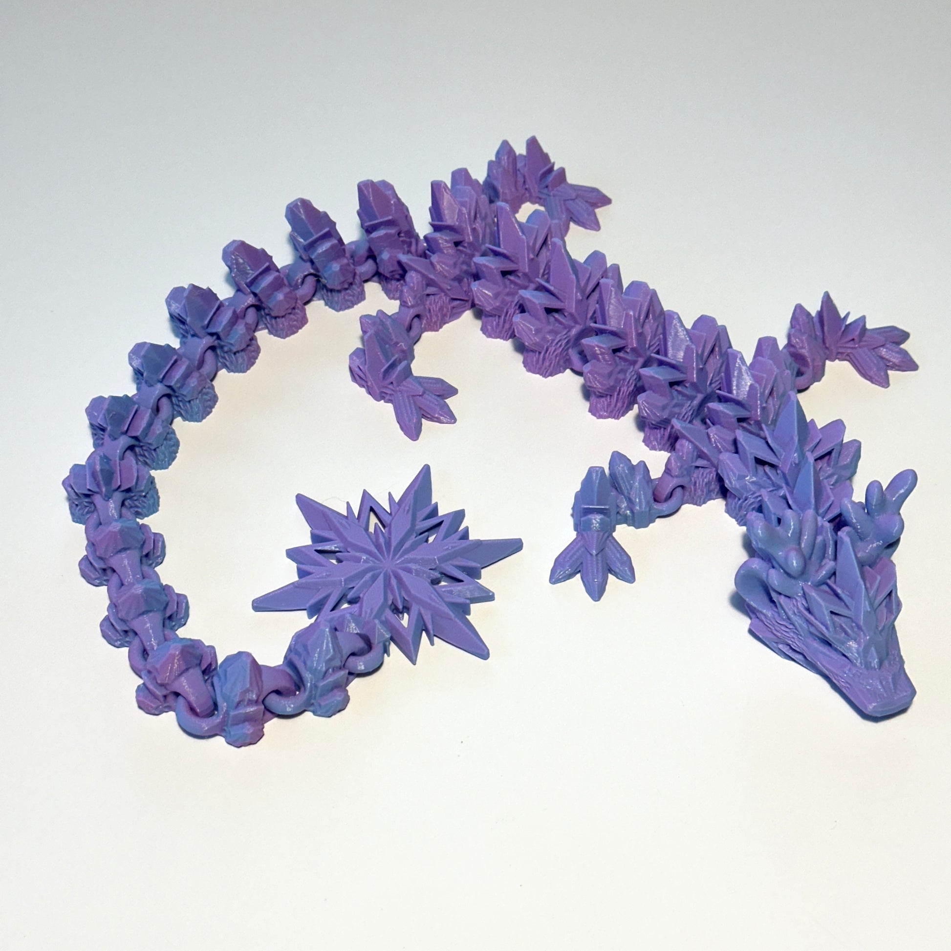 Crafted with precision using high-quality PLA material, this dragon is not only lightweight but also environmentally friendly and durable. The PLA used in this model ensures a smooth, detailed finish that showcases the dragon's icy scales and delicate snowflake in all their glory.