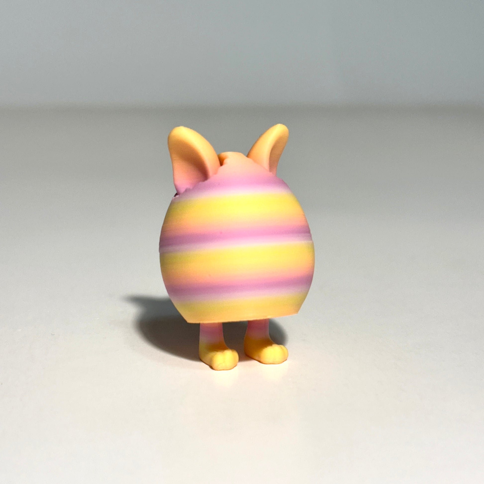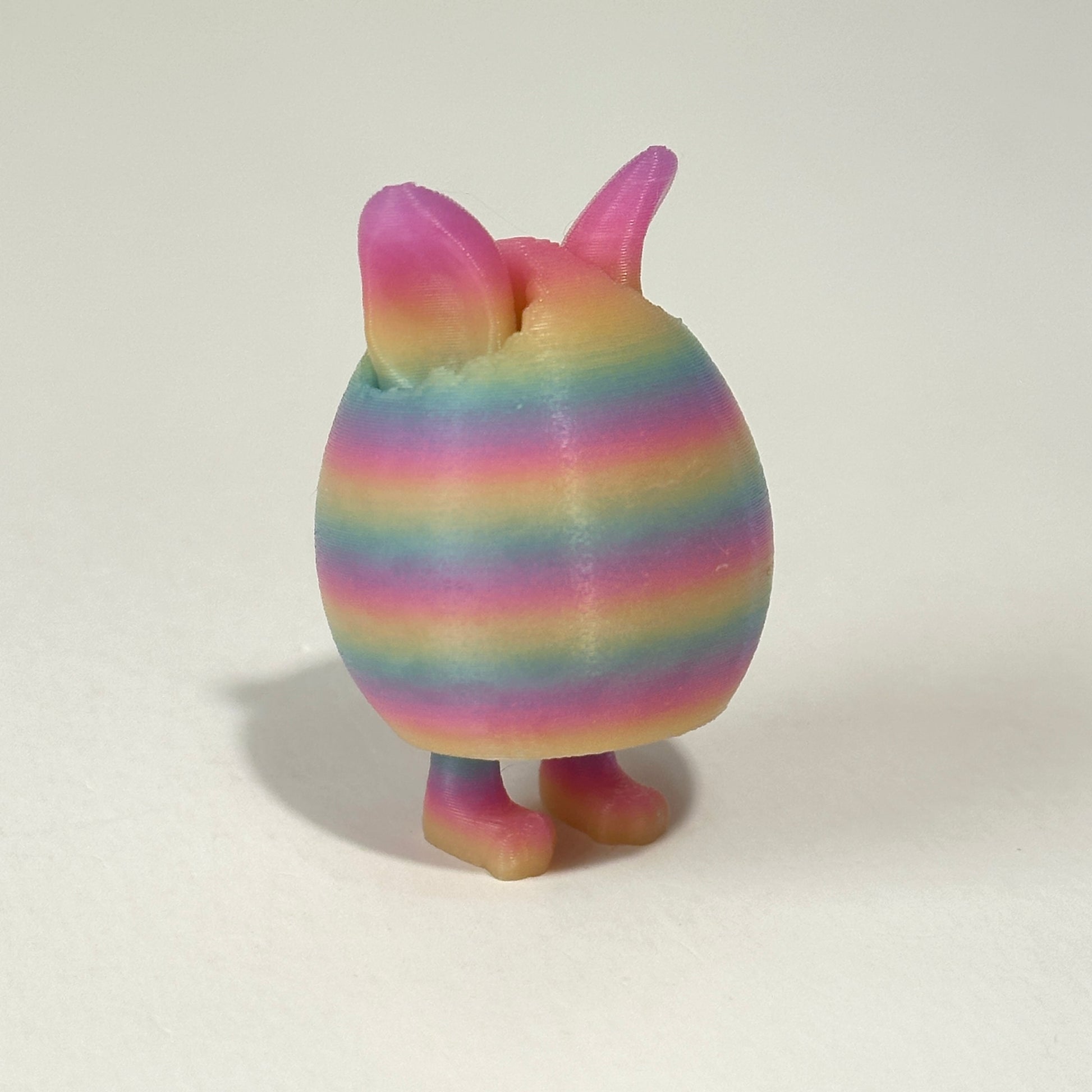 Celebrate Easter with this adorable 3D printed Articulating Easter Egg! This charming design features a fully articulating egg with pop-out feet, allowing it to stand up on its own. Peeking out from the top are two little ears, giving it a fun, cracked-egg appearance that adds a touch of whimsy to any Easter basket, shelf, or festive décor.