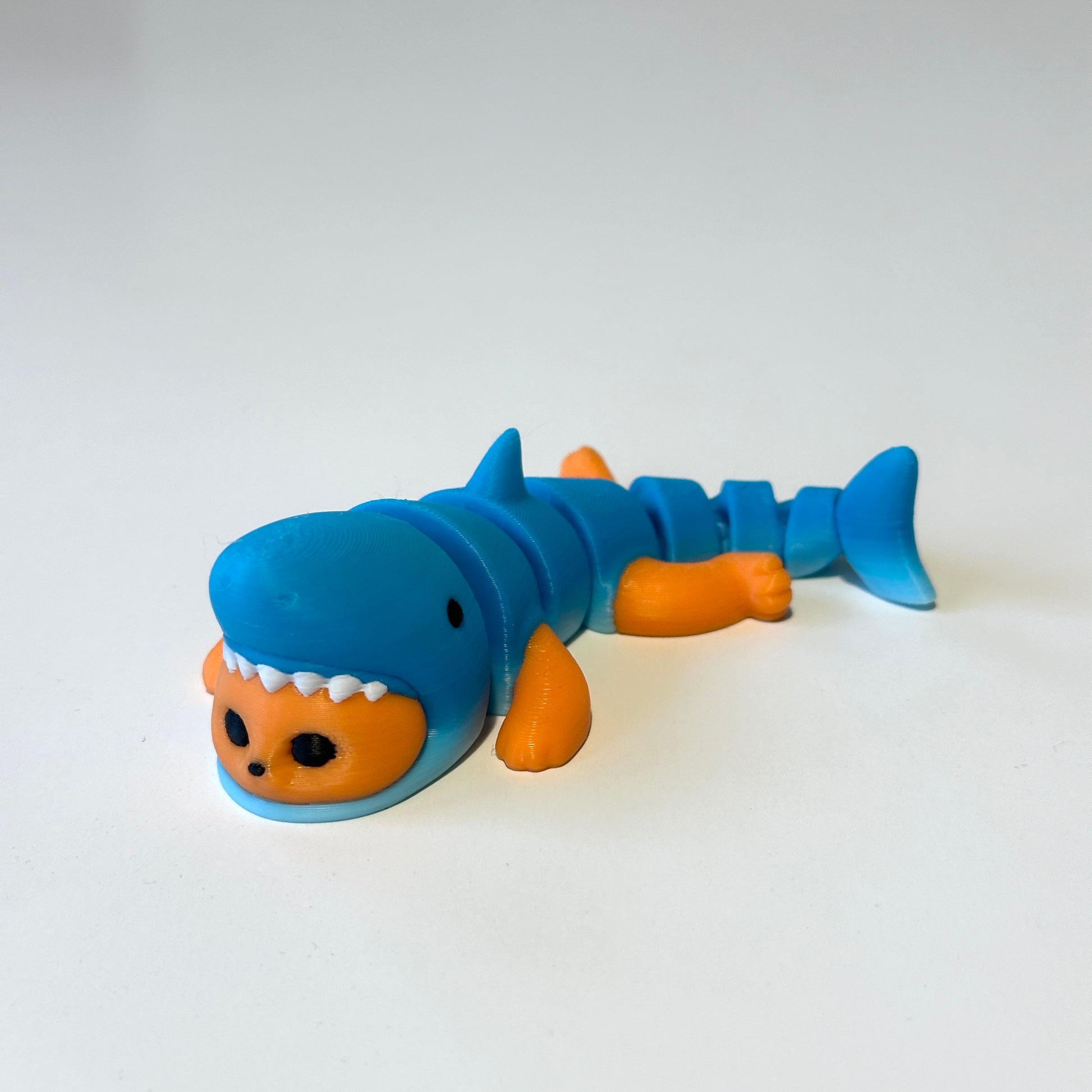 Add a splash of whimsy to your day with this Kitten Shark! This 3D printed, fully posable mini figure features a playful cat dressed in an adorable shark costume, perfect for display on a desk, shelf, or as a one-of-a-kind gift. At approximately 4.25 inches long, this petite yet captivating figurine packs plenty of personality in a small package!