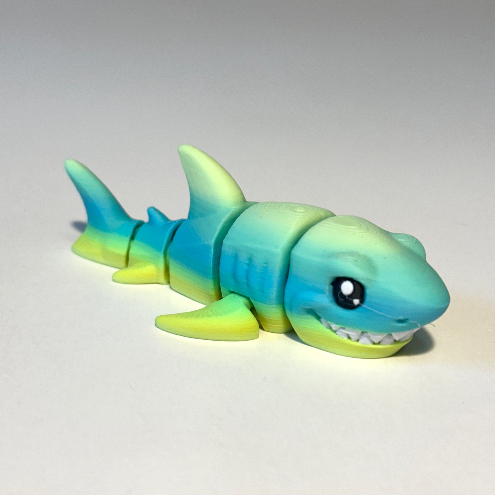 Each shark is printed in three vibrant colors, giving it a dynamic and eye-catching appearance. Thanks to its articulated body, it can be posed in a variety of lifelike positions—great for fidgeting, displaying, or gifting.
