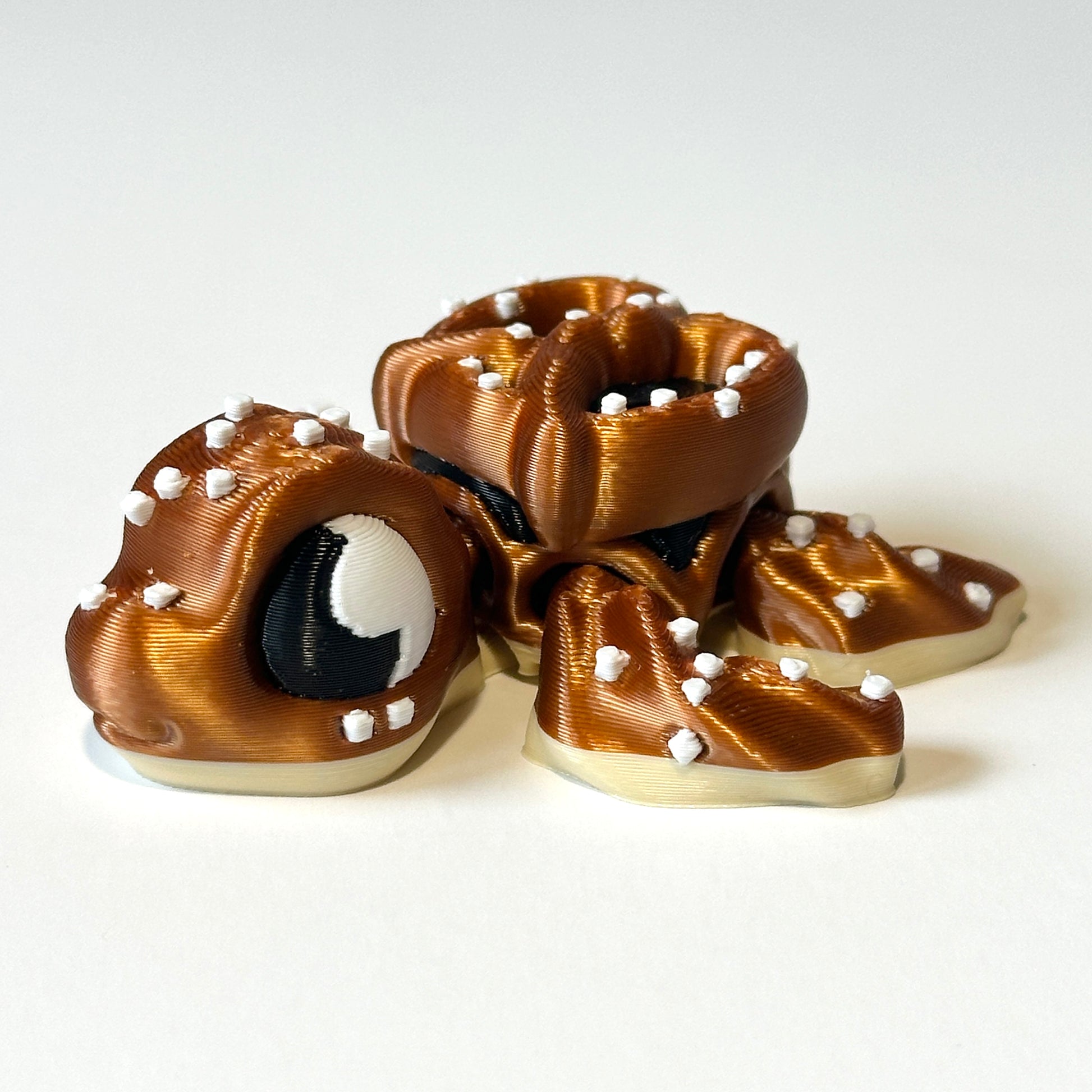 Meet the Pretzel Turtle — a fun and unique twist on your favorite flexi turtle design! This adorable, fully articulating turtle looks like it’s made of delicious pretzels, complete with detailed texture and smooth, flexible movement. Whether you’re a collector of flexi creatures, a fan of whimsical décor, or simply love turtles with personality, this little guy is sure to bring a smile to your face.