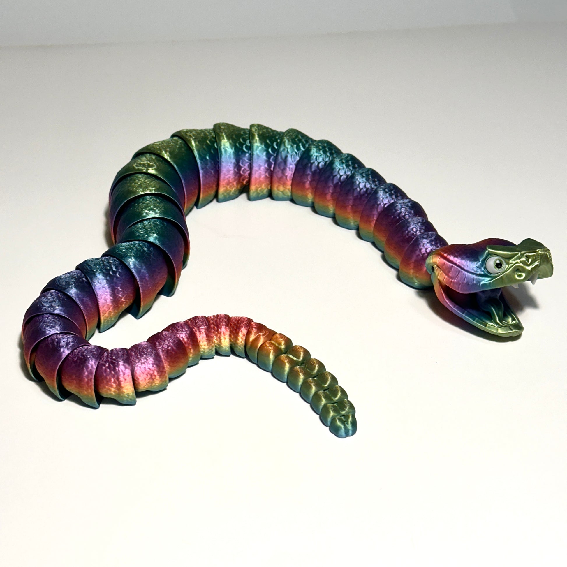 Unleash the captivating beauty of nature with our 3D Printed Rattlesnake, a fully articulating masterpiece that brings a lifelike touch to your collection. Crafted with precision and care, this stunning model measures approximately 25 inches long and features a vibrant multi-color design. The eyes and fangs are meticulously colored, adding a realistic and striking detail that sets this piece apart.