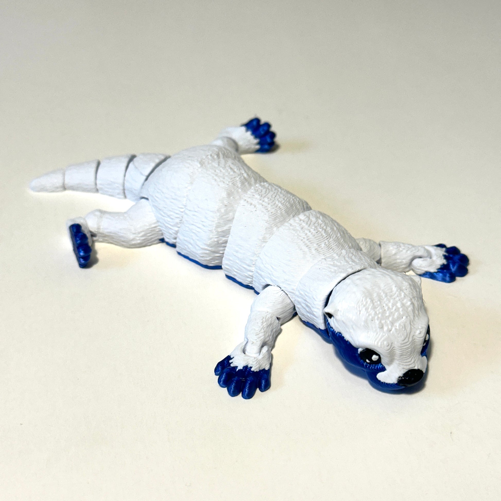 Add a splash of fun to your collection with this fully articulating 3D printed River Otter! Measuring approximately 9 inches long, this beautifully crafted otter is both a conversation starter and a unique piece of art. Each River Otter is printed using premium PLA material, which is derived from renewable resources, making it both durable and eco-friendly. PLA is known for its lightweight feel, vibrant color retention, and smooth finish, making it an excellent material for detailed 3D printed creations like this.
