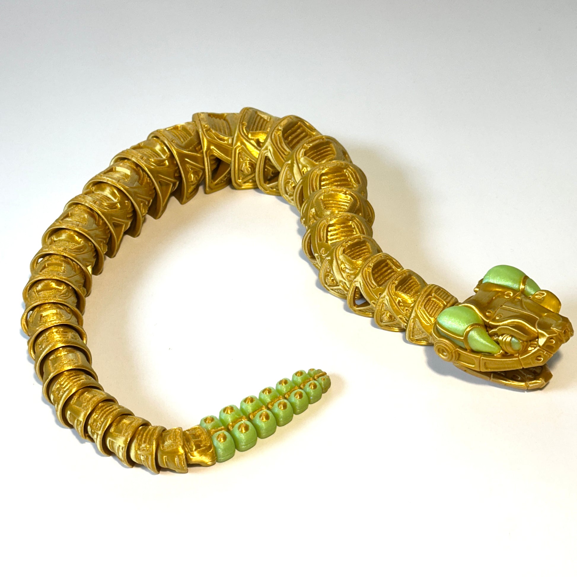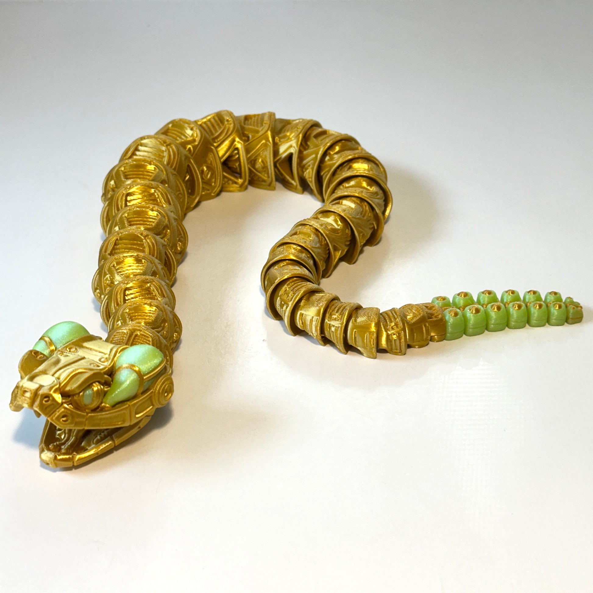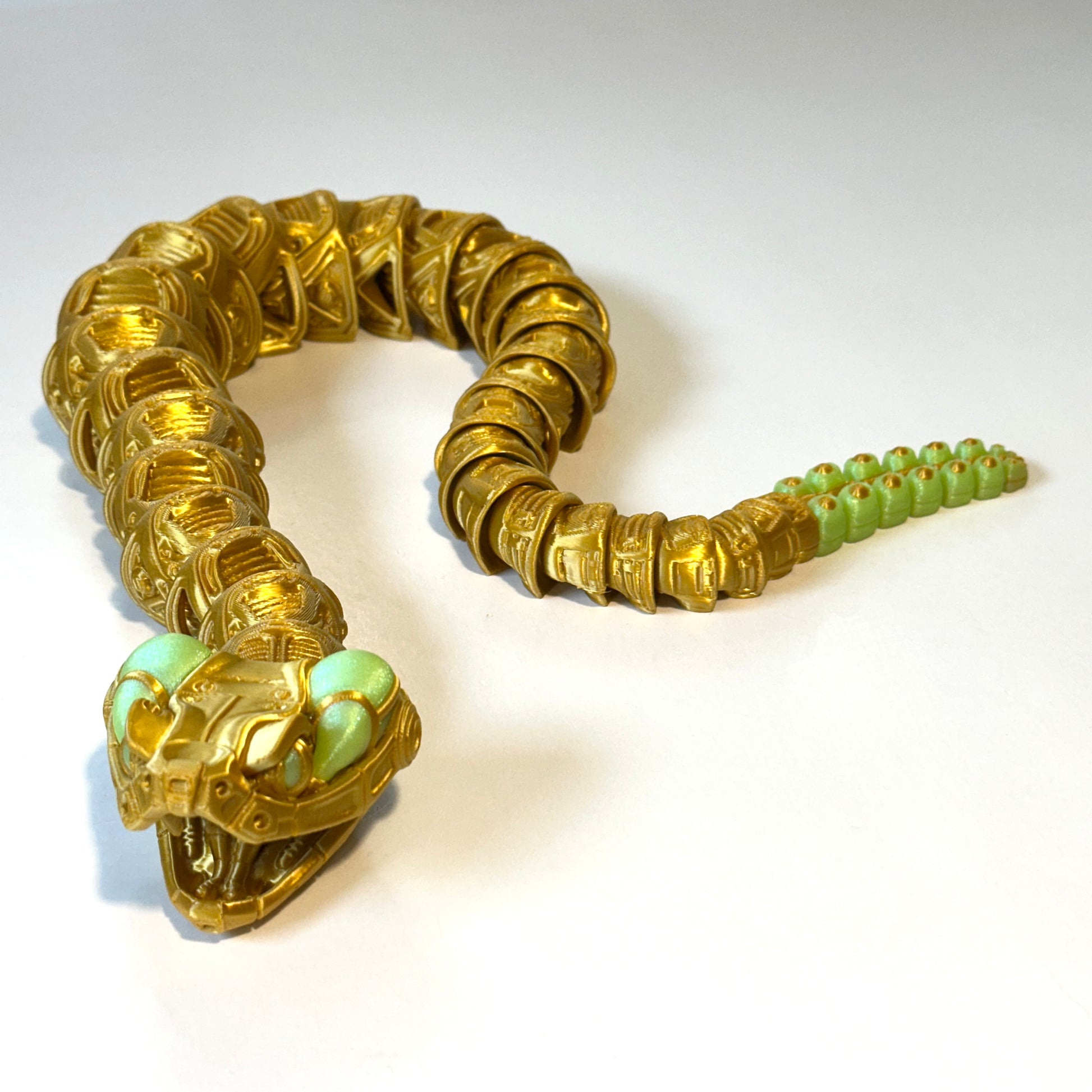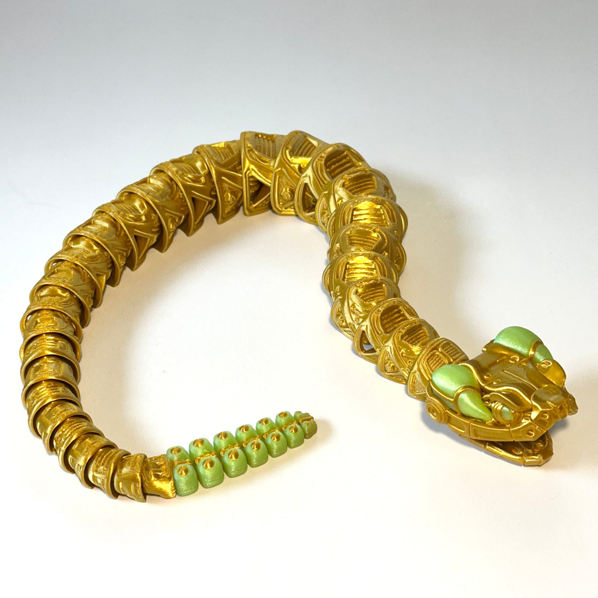 Strike up some excitement with this 3D printed Robo Rattler, a fully articulating robotic-style rattlesnake that's as cool as it is flexible! Measuring approximately 24.5 inches long, this sleek design features smooth movement and coiling capabilities that make it perfect for play, posing, or displaying as a futuristic reptilian companion.