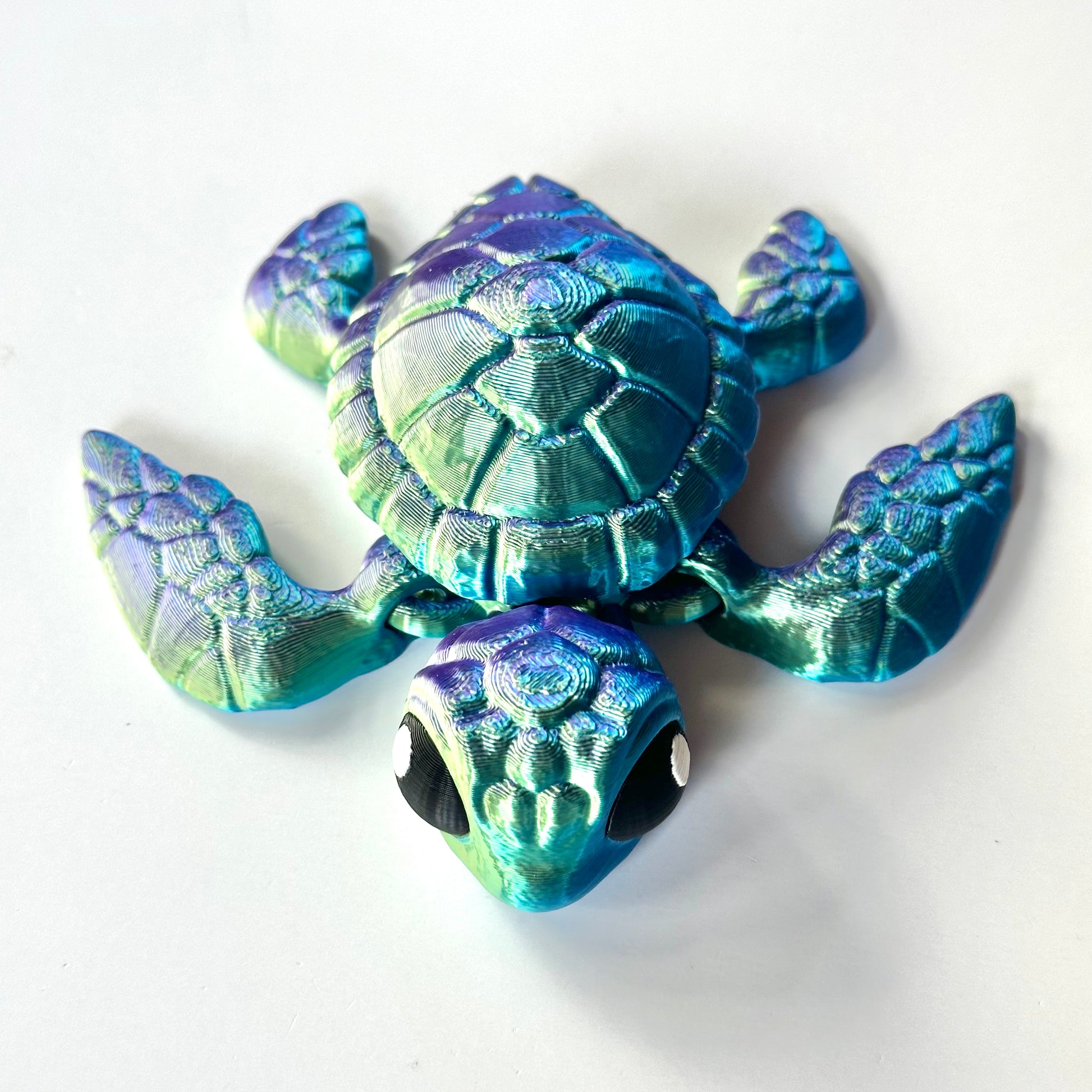 Dive into the beauty of the ocean with our fully articulating 3D printed Sea Turtle! This intricately designed masterpiece measures approximately 4.5" long and 5" wide, capturing the graceful essence of these majestic creatures.