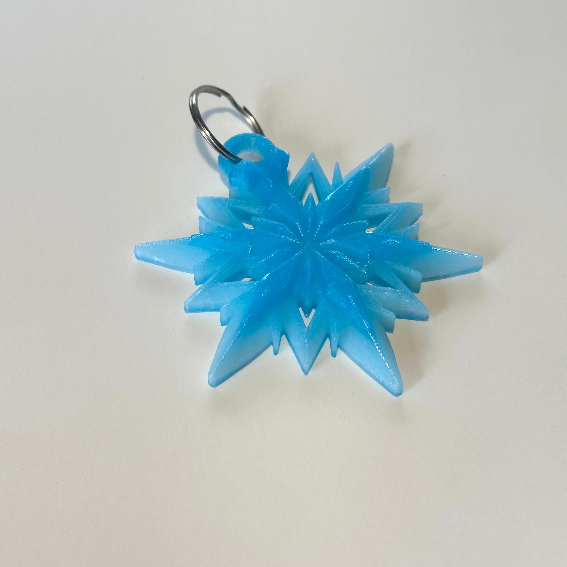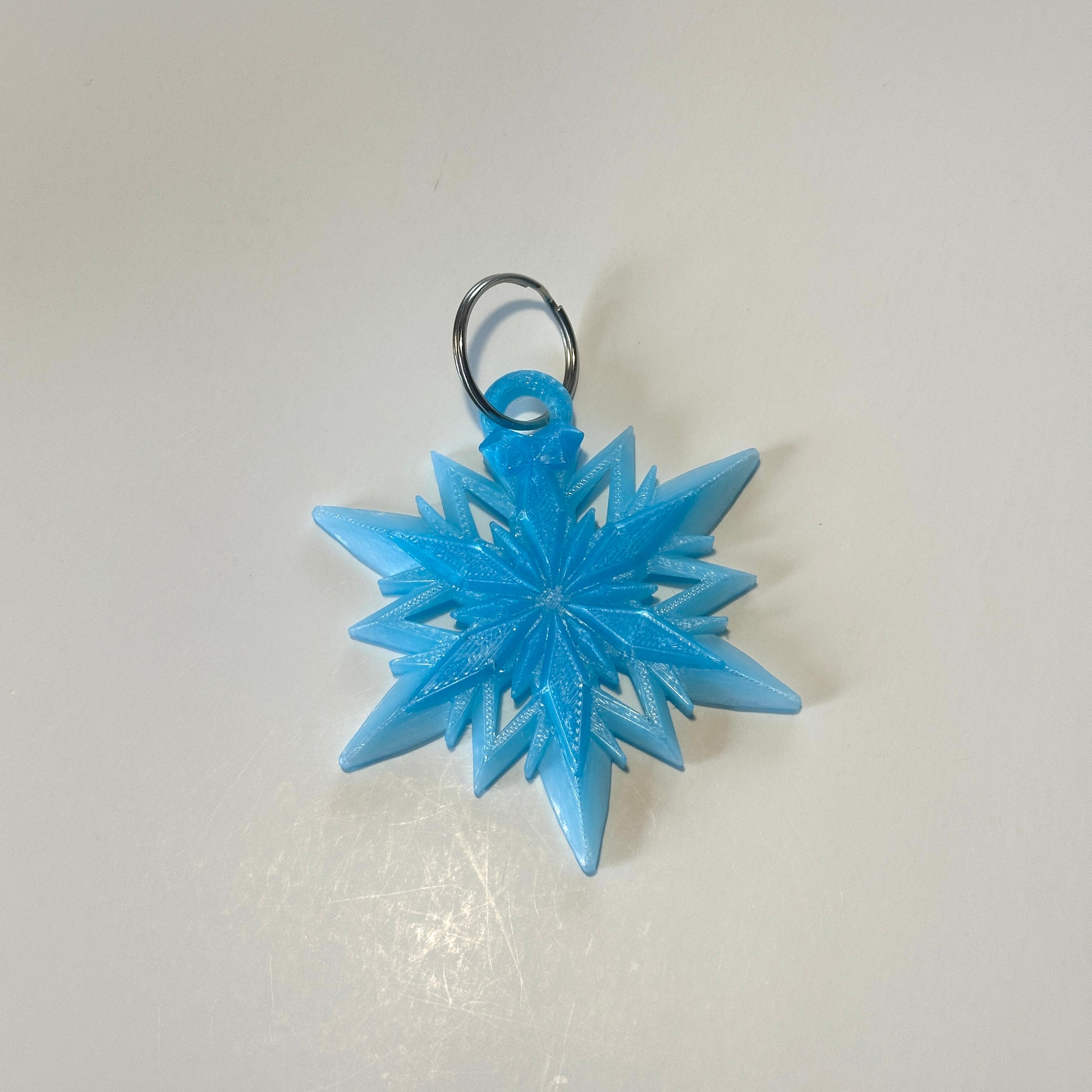 Add a touch of winter charm to your keys, bag, or purse with this 3D Printed Snowflake Keychain! Measuring approximately 3.25 inches long, this intricately designed snowflake is a stylish and lightweight accessory that makes a perfect gift or personal treat.