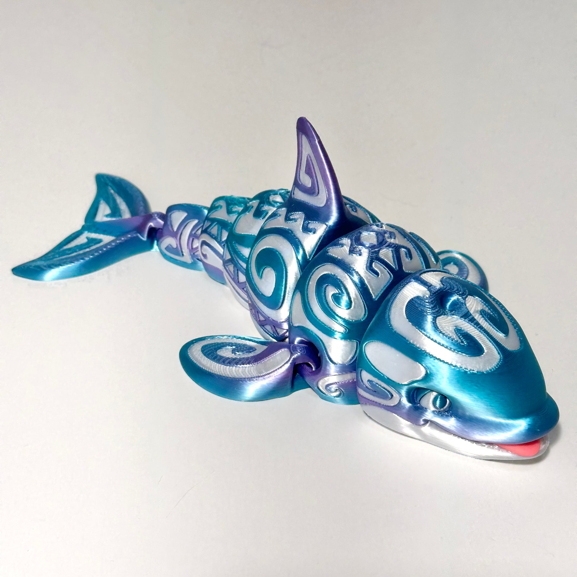 Dive into the captivating world of marine artistry with our Tattooed Orca, a stunning 3D printed creation that brings the majestic beauty of the ocean's apex predator to life with a unique twist. This fully articulating orca measures approximately 8 inches long and features an intricate tattoo-like design that gracefully adorns its body, showcasing a blend of tradition and innovation.