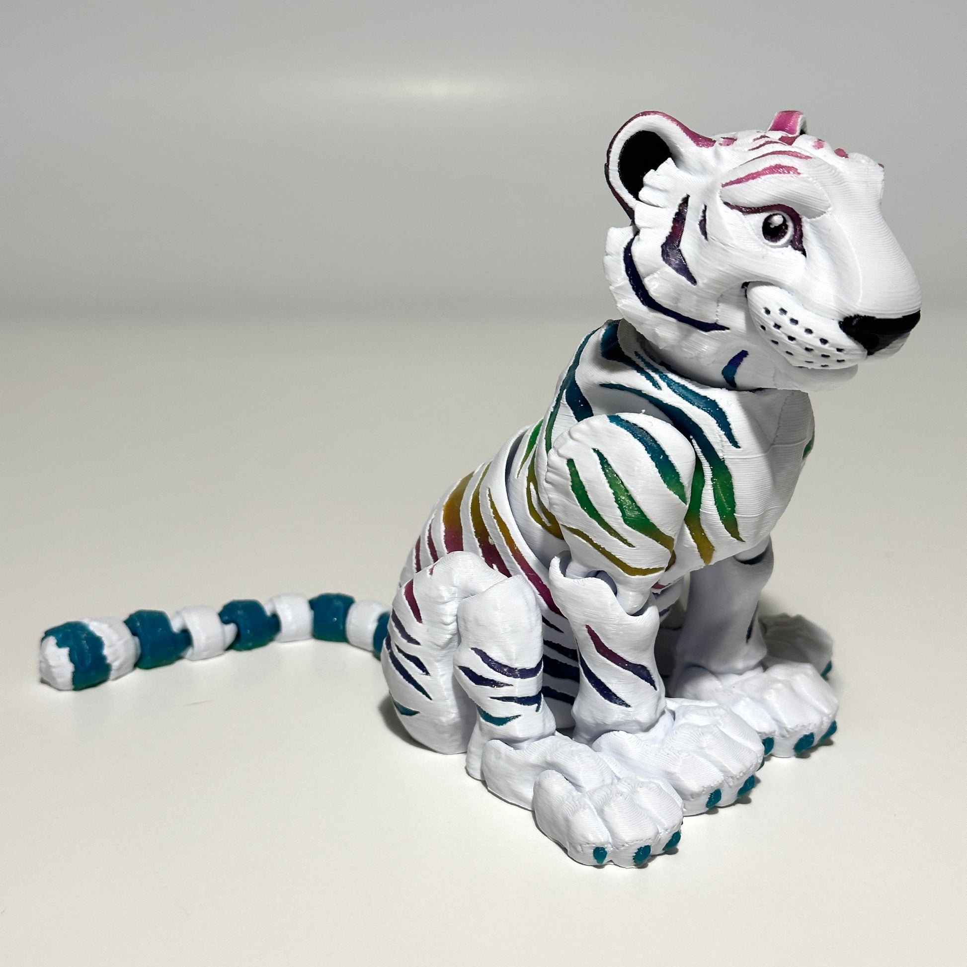 Welcome to our store, where imagination meets reality with our stunning 3D printed Tiger! This majestic creature is fully articulating, allowing you to pose it in various lifelike stances. Measuring approximately 4.5" tall and 9.5" long, our Tiger is a masterpiece of detail and craftsmanship.