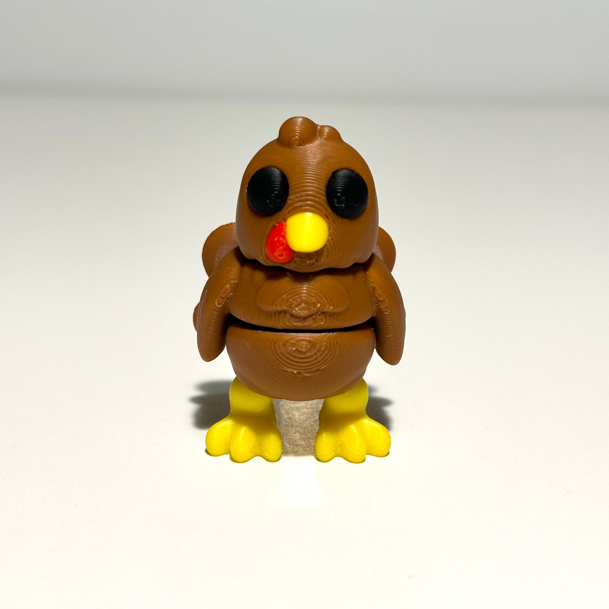 Add a bit of charm to your collection with this adorable, fully articulating Tiny Turkey! Standing at approximately 2.5 inches tall, this little turkey is ready to bring a touch of festive spirit to any setting. Each piece is crafted with four vibrant colors, making every turkey as unique as the filament used. Whether displayed on a shelf or posed in your favorite scene, this tiny figure is sure to catch attention.