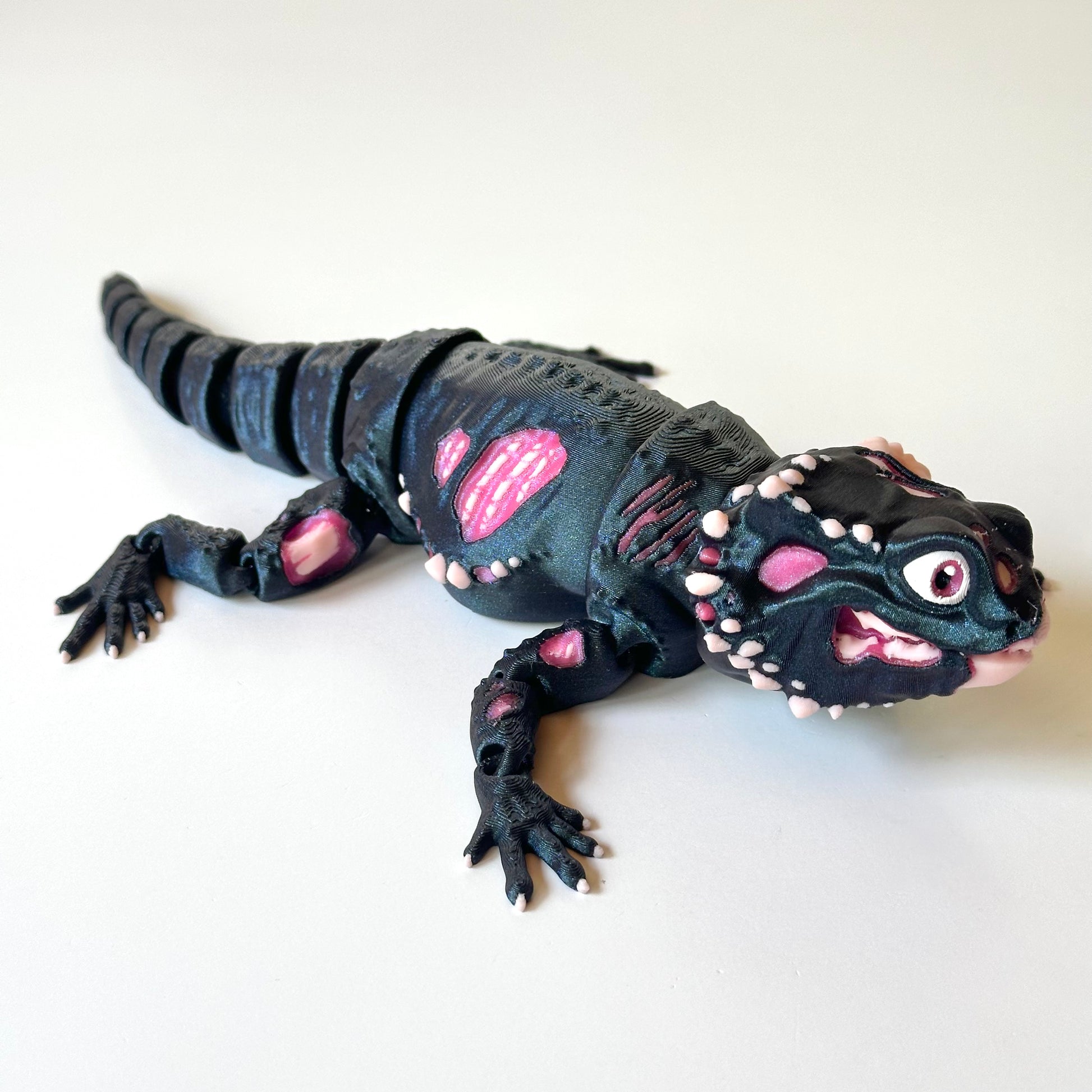 Bring a unique blend of whimsy and spookiness to your collection with our 3D Printed Zombeardie! This fascinating creation is a fully articulating Bearded Dragon with a twist—it's a zombie! The Zombeardie features intricate details, with flesh and bones showing through its 'skin,' making it a perfect addition for lovers of fantasy, reptiles, and the undead.